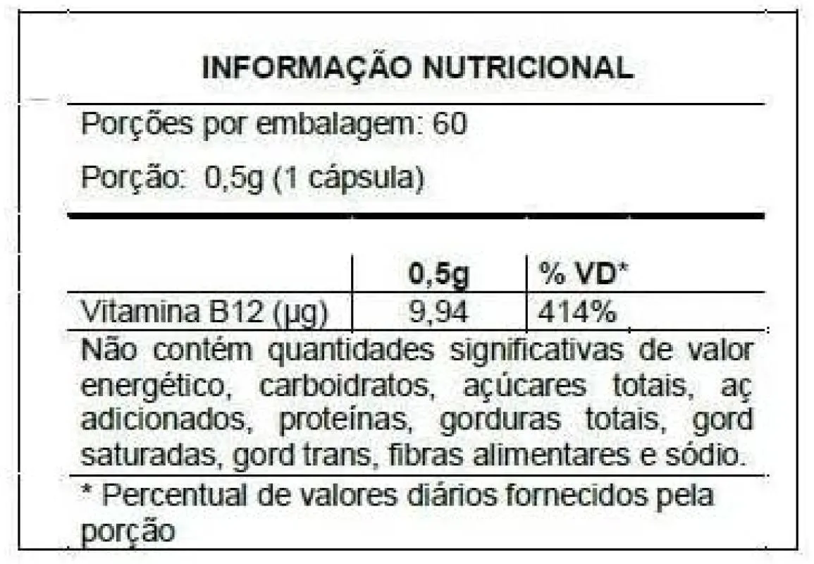 Kit com 5 unidades.   Ingredientes; Metilcobalamina (vitamina B12), Antiumectantes Silicato de Magnésio e Dióxido de Silício. Composição da cápsula: Gelatina.