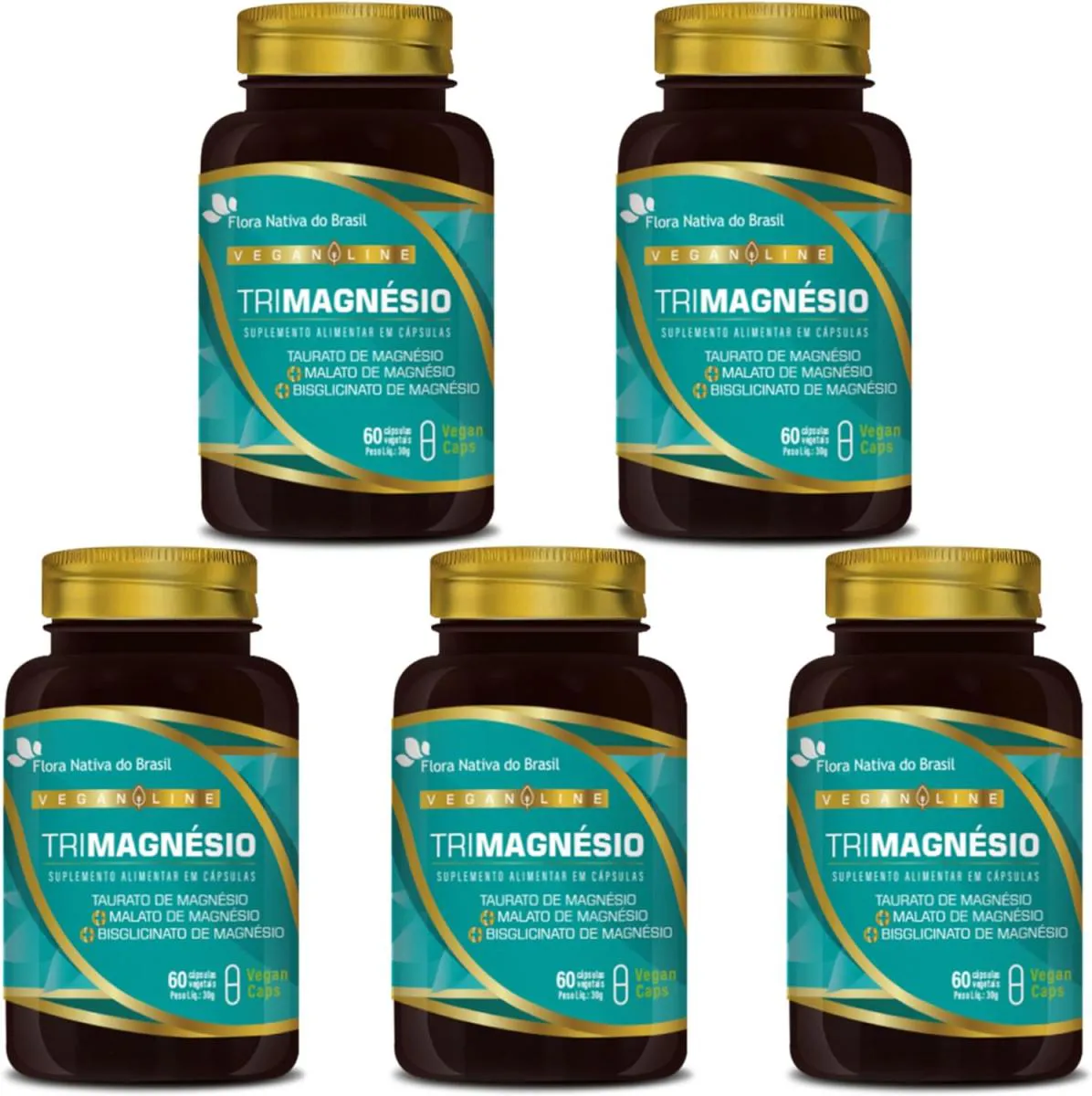 5X VEGAN TRIMAGNéSIO (TAURATO, MALATO E BISGLICINATO) 60 CAPS FLORA NATIVA