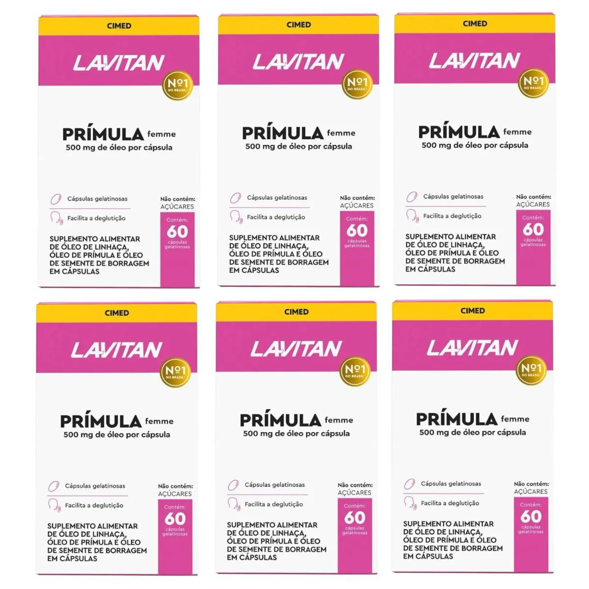 6 Caixas Óleo de Prímula Femme 60 Cápsulas Lavitan