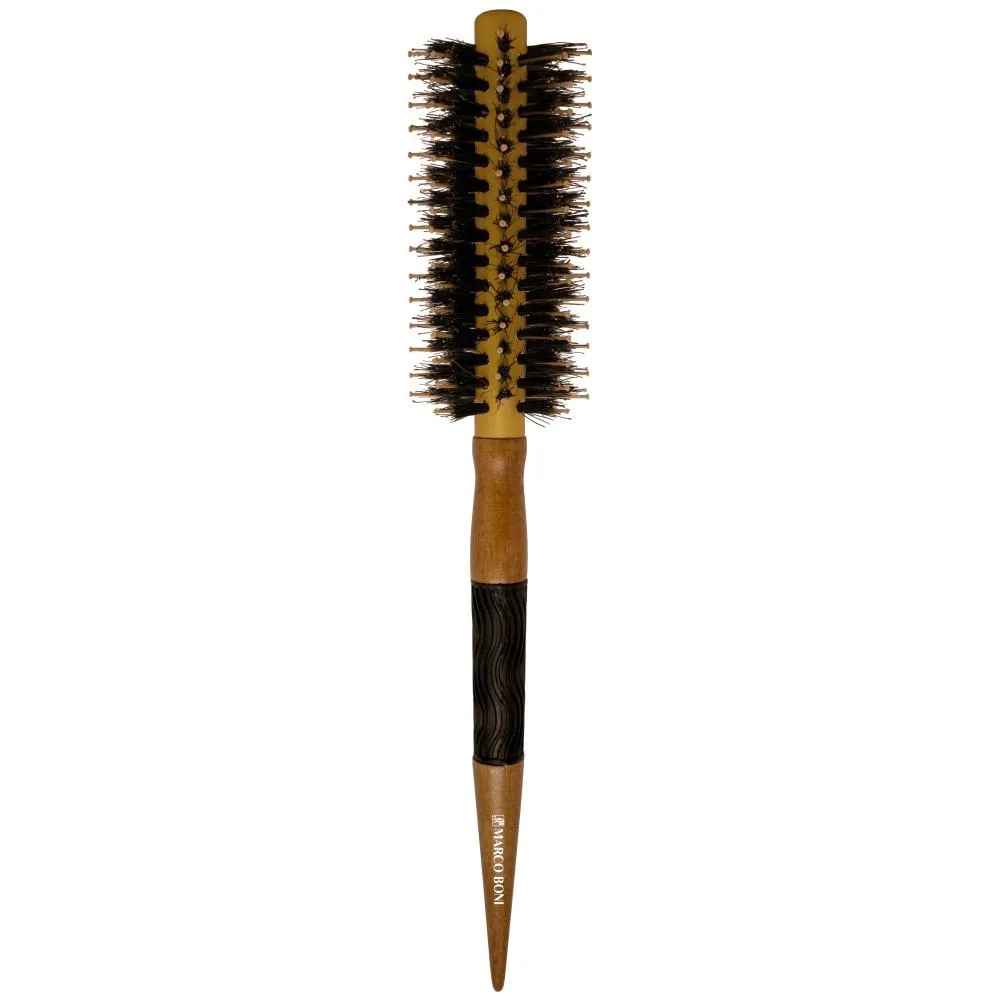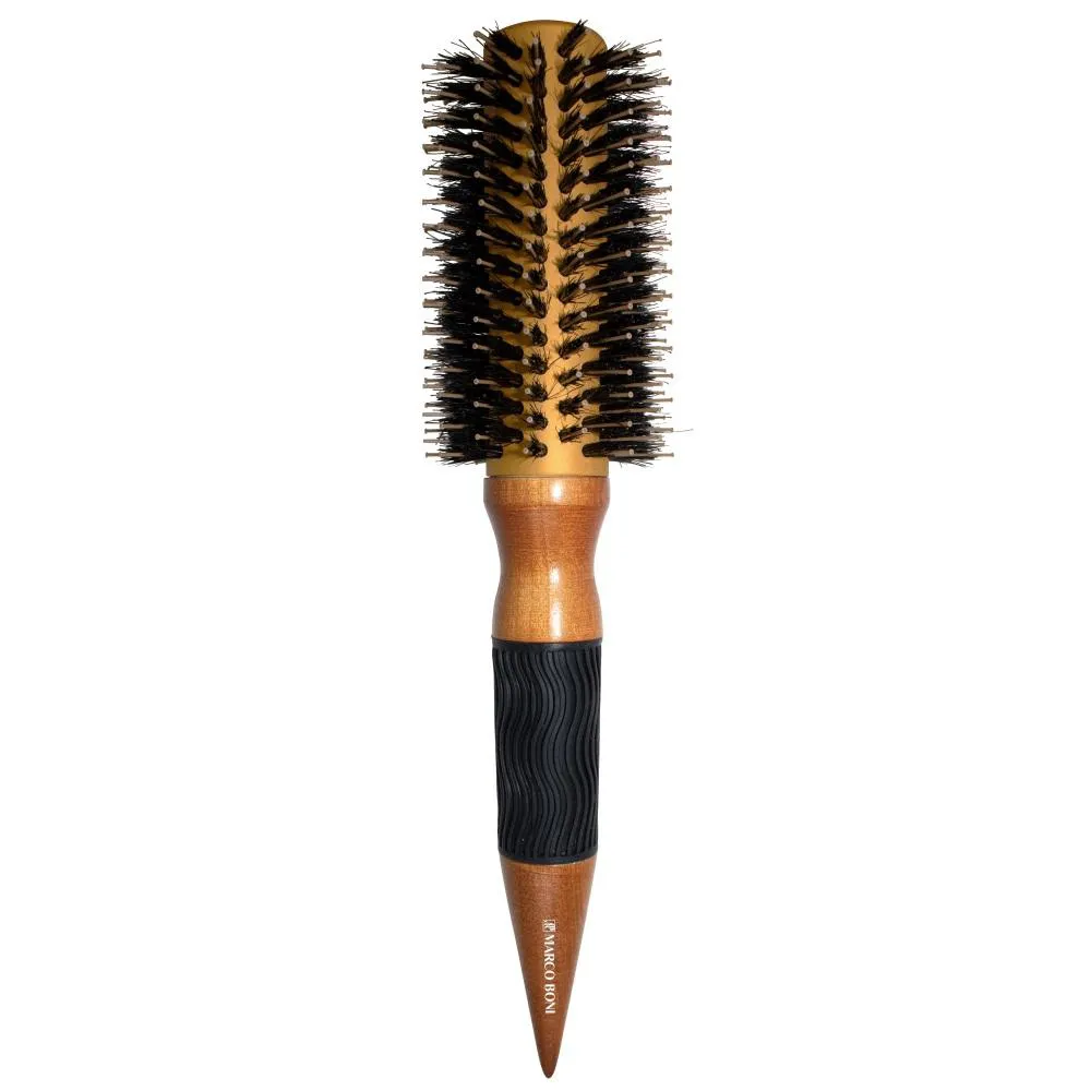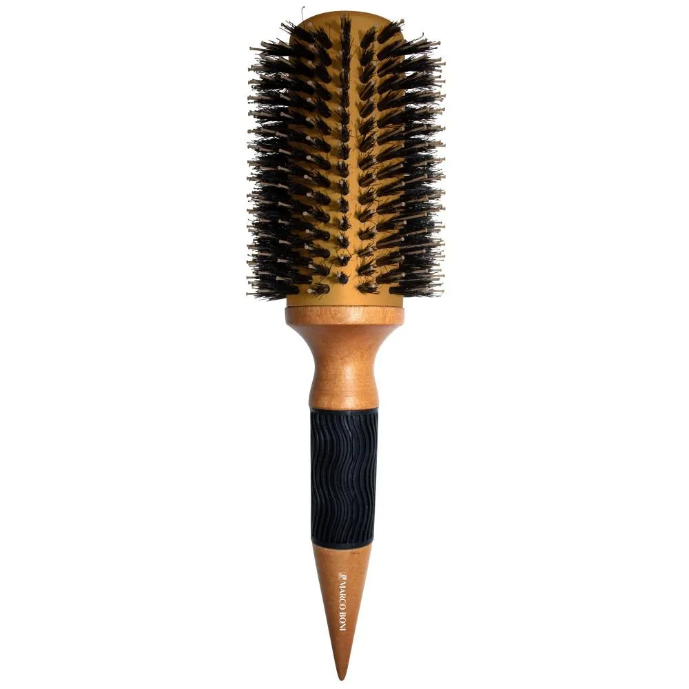 Escovas de cerdas naturais de Javali (reduz o volume) e Nylon de pontas arredondadas com acabamento em Metal Alumínio, Madeira e Borracha. Ideal para todos os tipos de cabelos, sejam eles para secar, alisar, modelar e finalizar.