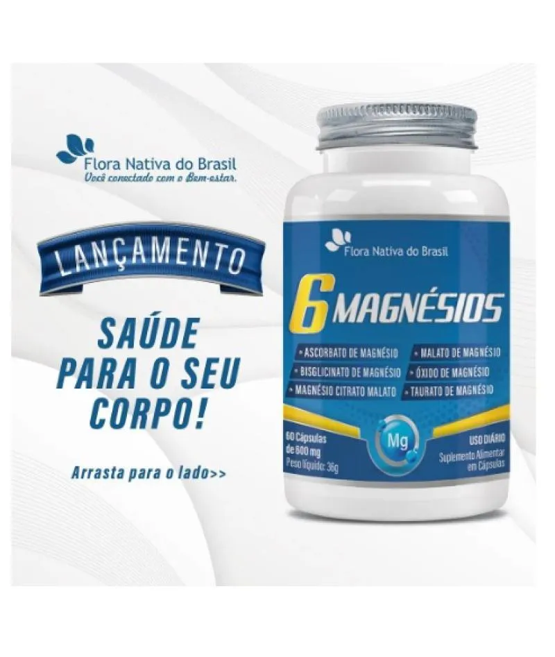 6 Magnésios Suplemento Alimentar Flora Nativa 60Cps