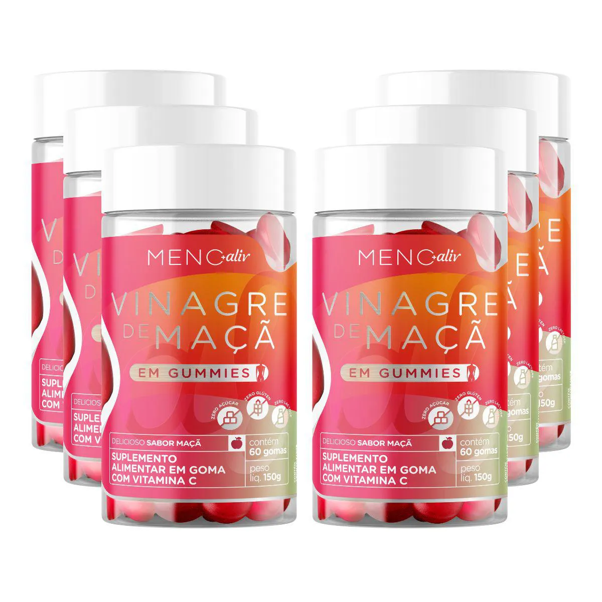 Gummie Vinagre de Maça - Vitaminas B1, B6, B12 - 6 Potes com 60 Gomas Sabor Maça uso diário