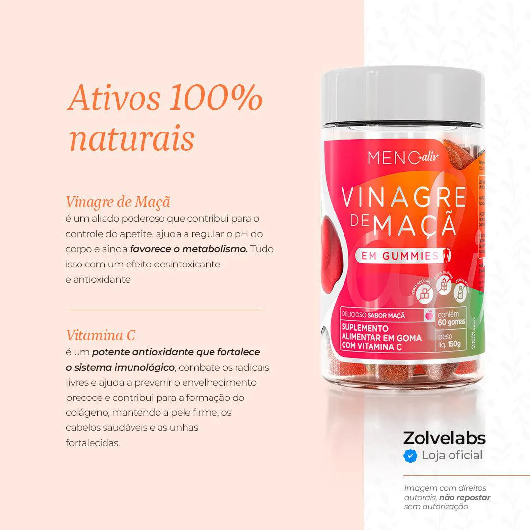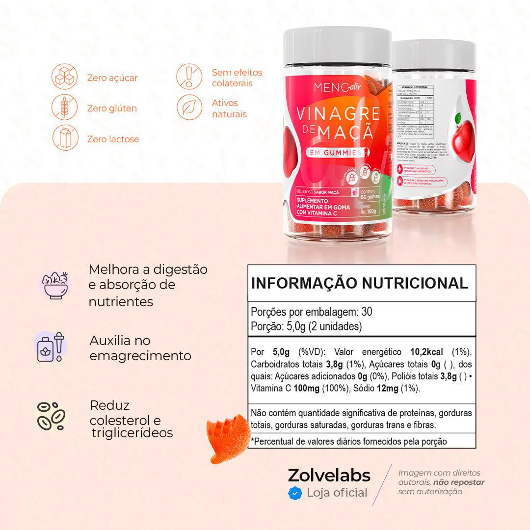 O Gummie de Vinagre de Maçã da Zolve é um suplemento alimentar mastigável, que traz os benefícios do vinagre de maçã sem o sabor ácido e a acidez estomacal característica da versão líquida. Com sabor suave e agradável, ele auxilia na rotina alimentar de forma prática, promovendo bem-estar digestivo e suporte ao metabolismo.