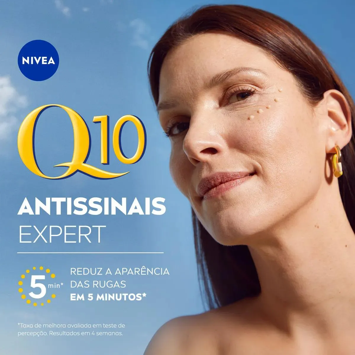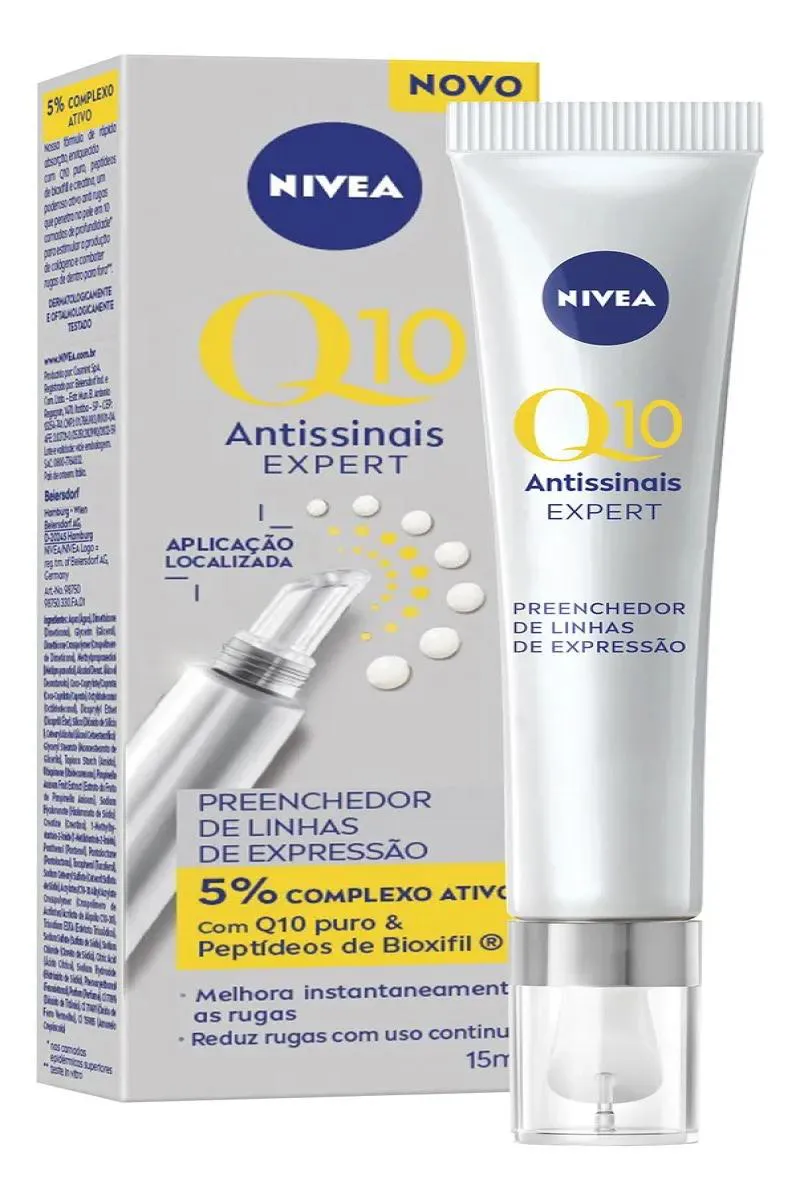 O Nivea Q10 Antissinais Expert é um creme facial indicado para reduzir rugas e linhas de expressão com efeito visível em até 5 minutos. Sua fórmula contém 5% de complexo ativado, com Q10 puro, Peptídeos de Bioxifil e creatina, que hidratam profundamente, estimulam a produção de colágeno e ajudam a prevenir o reaparecimento de novas rugas com o uso contínuo.