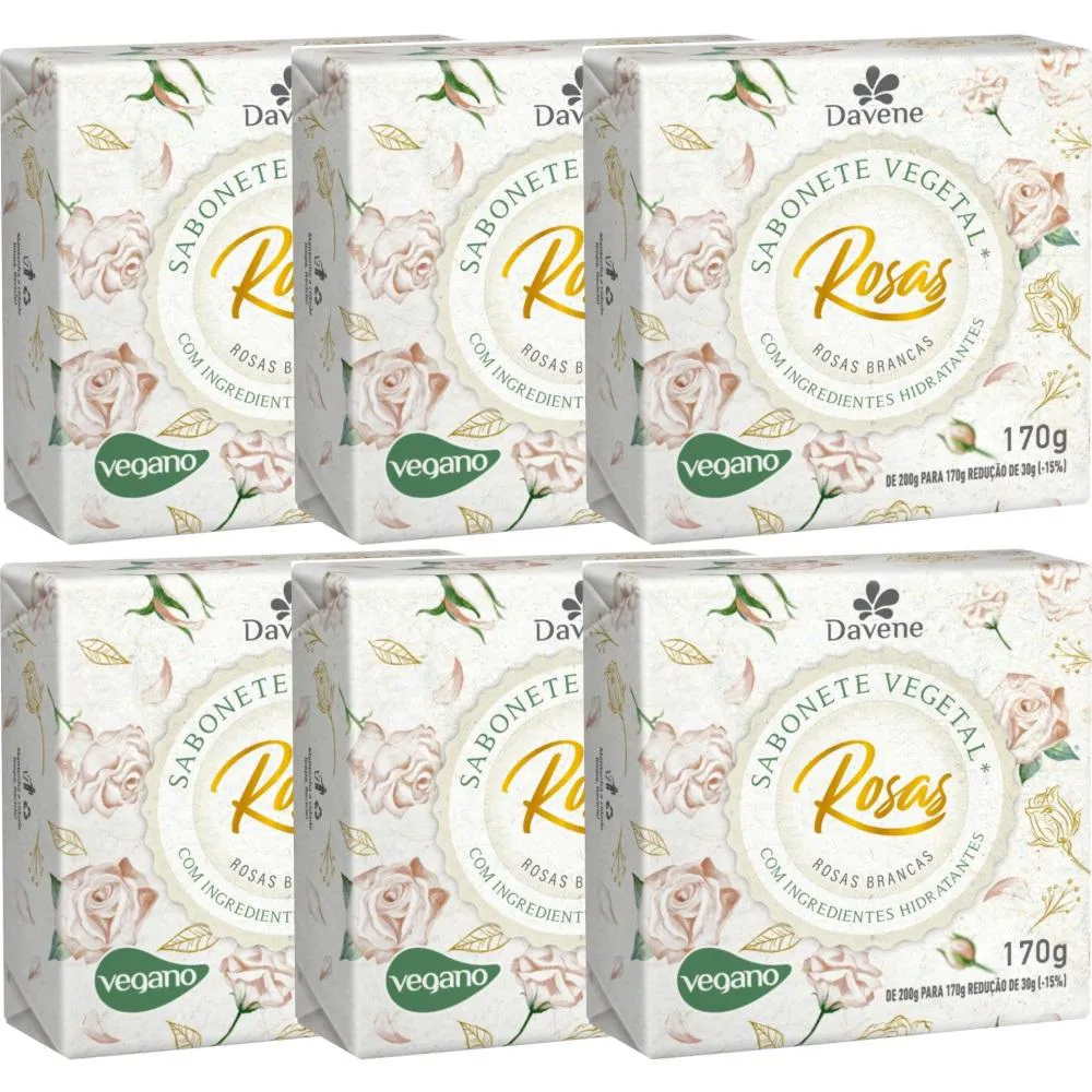 6Un Sabonete Vegetal Rosas Brancas 170G Davene