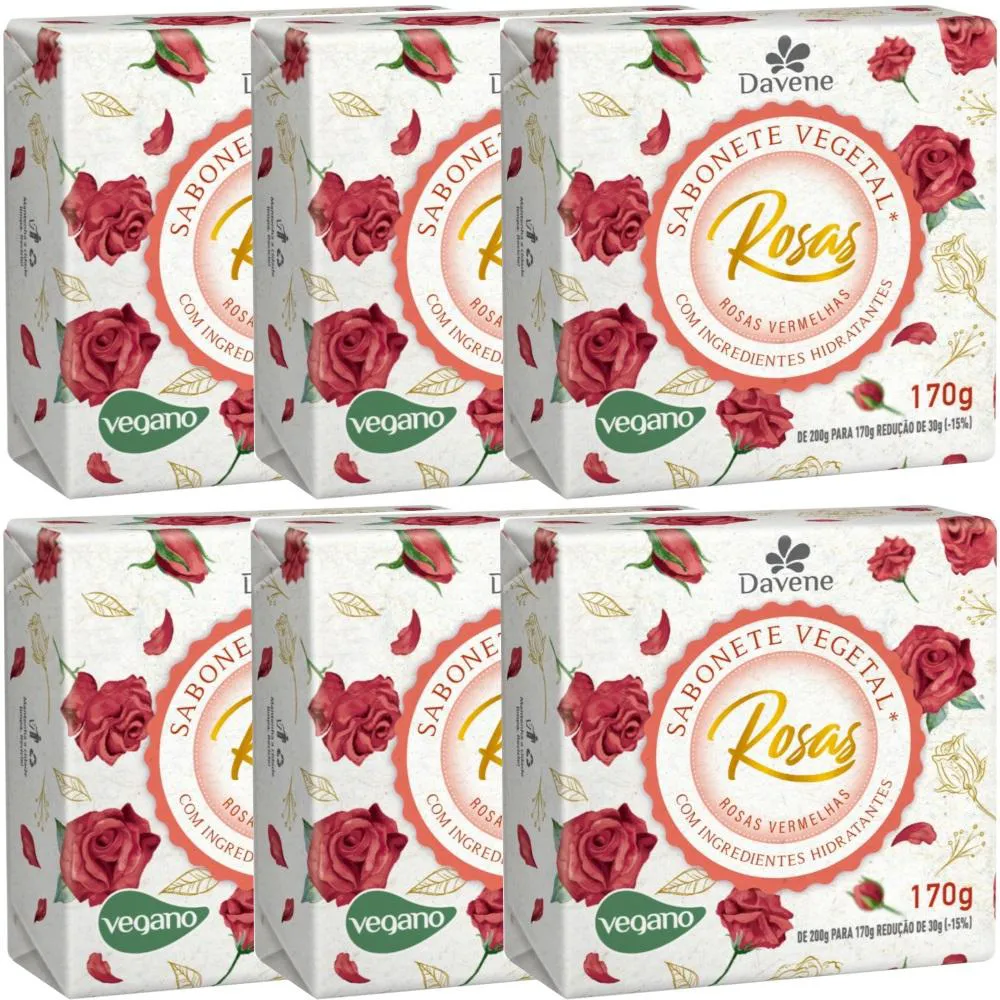 6Un Sabonete Vegetal Rosas Vermelhas 170G Davene