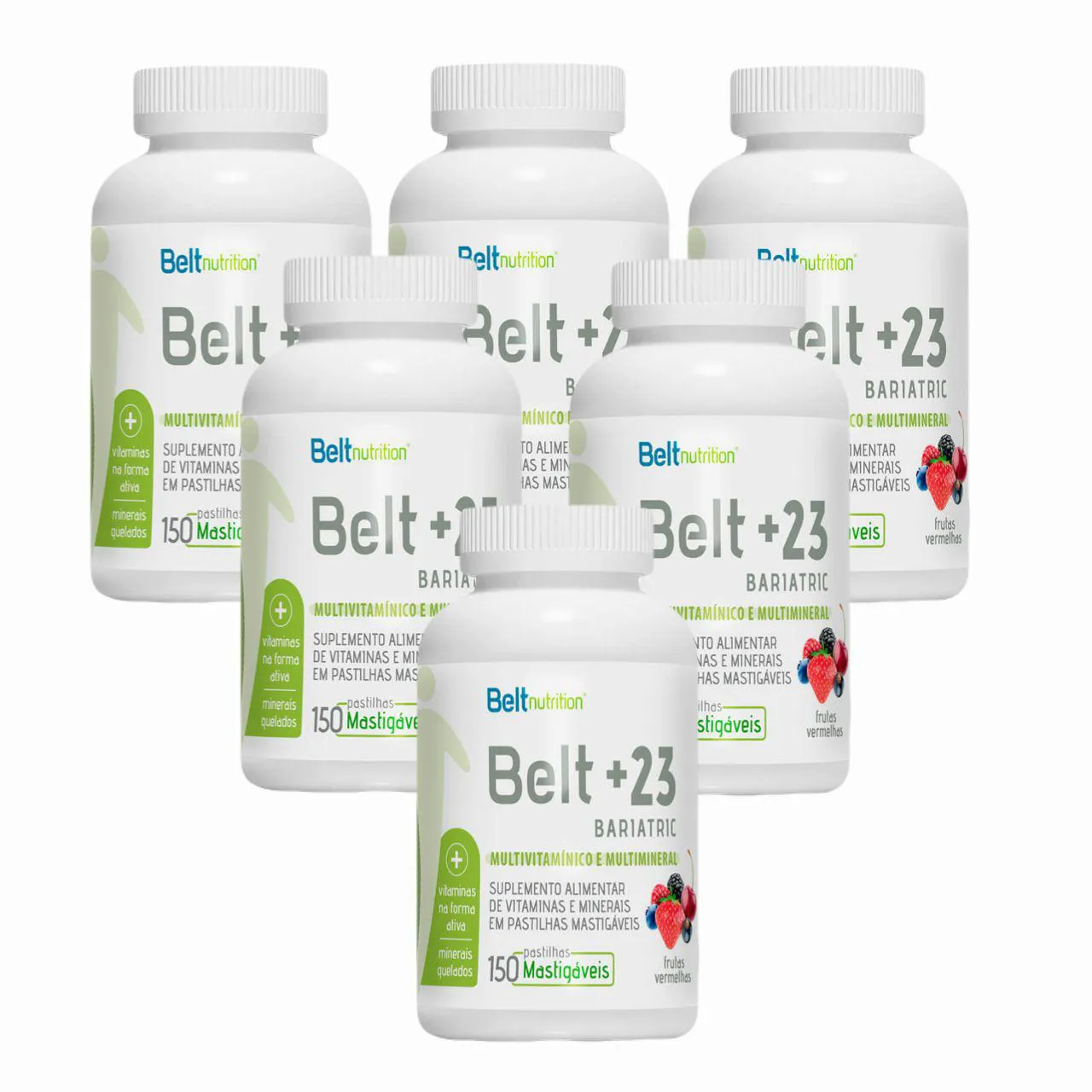 BELT +23 BARIATRIC MASTIGÁVEL - SABOR FRUTAS VERMELHAS. Kit contendo 6 frascos com 150 pastilhas cada.