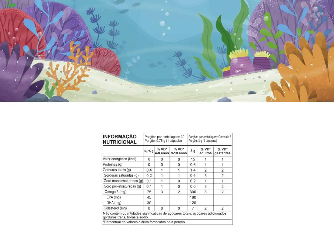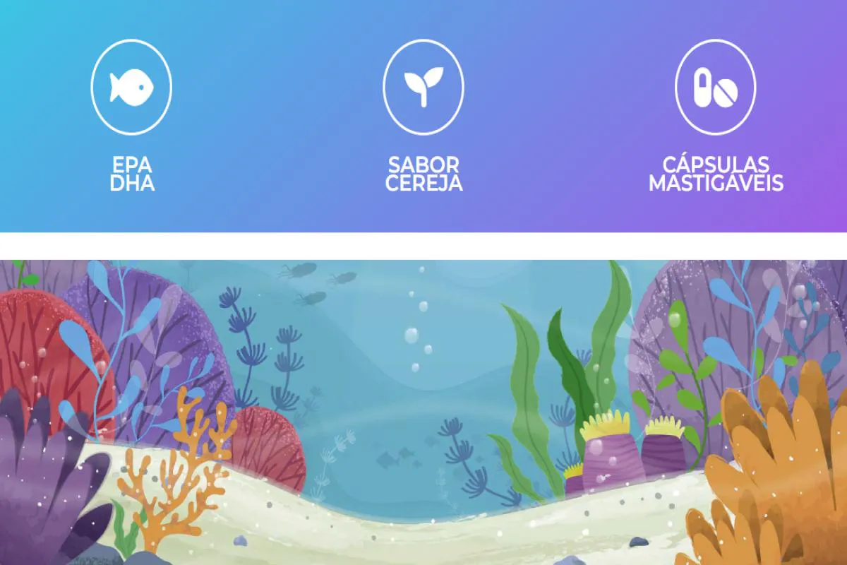 Óleo de peixe, óleo de coco, amido modificado, óleo de soja, água purificada, gelificante gelatina, umectante glicerol, edulcorantes xarope de maltitol, xilitol e sucralose, estabilizante cera de abelha, aroma de cereja e óleo essencial de laranja, emulsificante lecitina, corante carmins e antioxidante mistura concentrada de tocoferóis. ALÉRGICOS: CONTEM DERIVADOS DE PEIXE E SOJA e PODE CONTER LEITE, OVOS, AMENDOIM, AMÊNDOA, AVELÃS, CASTANHA-DE-CAJU, CASTANHA-DO-PARÁ, MACADÂMIAS, NOZES, PECÃS, PISTACHES, PINOLI, CASTANHAS, CRUSTÁCEOS (KRILL E CARANGUEJO), TRIGO, CENTEIO, CEVADA, AVEIA E SUAS ESTIRPES HIBRIDIZADAS E SEUS DERIVADOS. CONTÉM GLUTEN Produto dispensado de Registro conforme RDC 240/2018 ANVISA.Atenção: Este produto não é um medicamento. Manter fora do alcance de crianças. Não exceder a recomendação diária do fabricante do produto. Sempre consumir com supervisão médica.