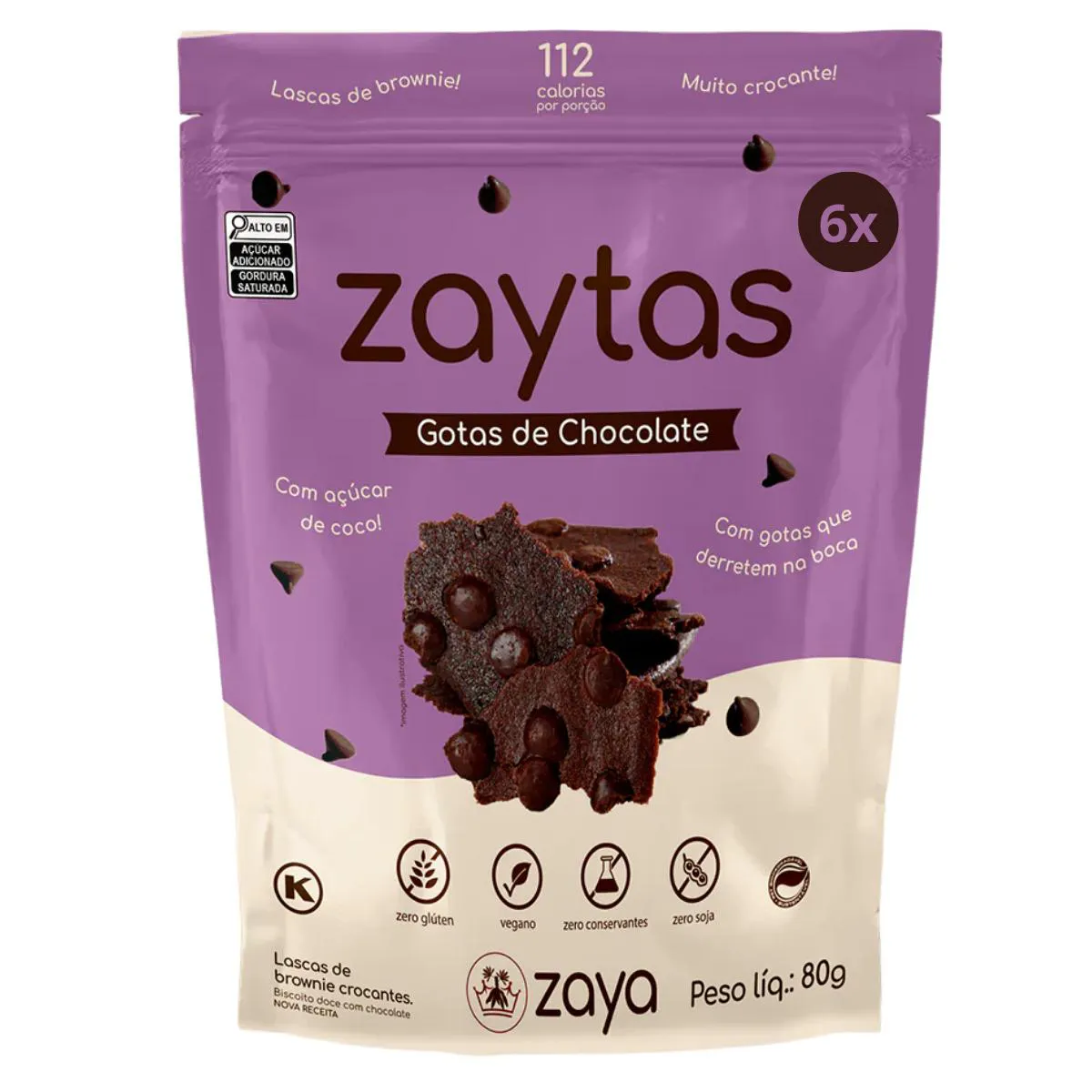 6X Zaytas Gotas de Chocolate Lascas Crocantes Vegana 80G