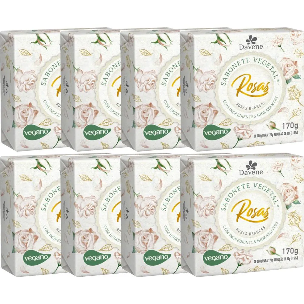 8Un Sabonete Vegetal Rosas Brancas 170G Davene