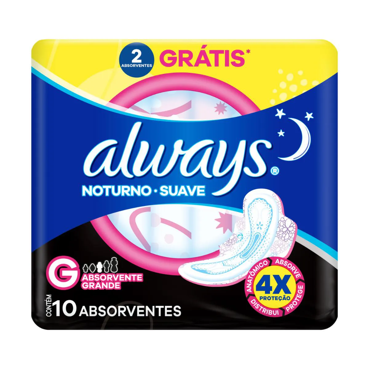 Absorvente Always Noturno Suave G com Abas 10 Unidades