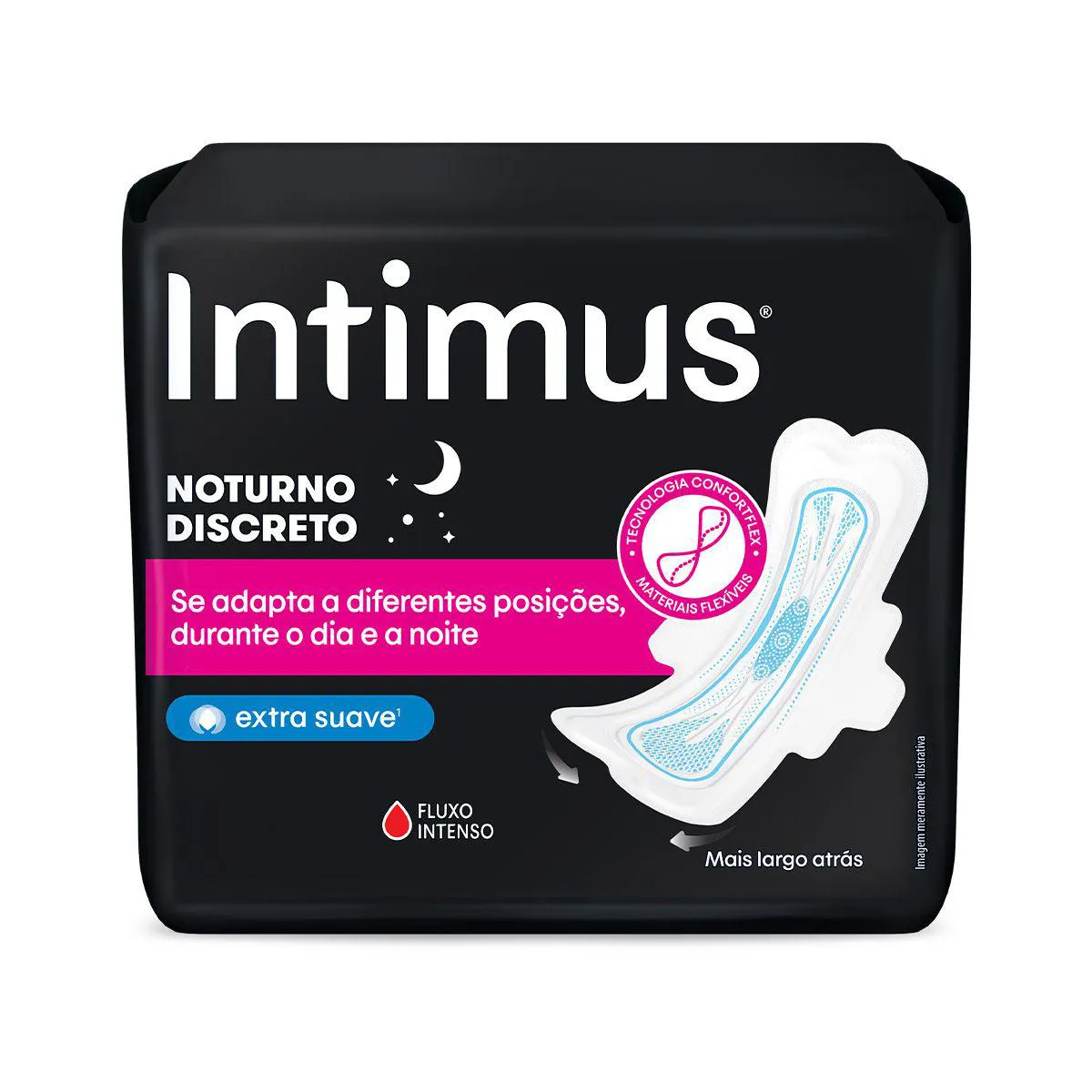Absorvente Intimus Noturno Toda Renovada Suave com Abas é um absorvente desenvolvido para evitar vazamentos do fluxo menstrual tanto de dia como de noite. Feito com materiais flexíveis e respiráveis que se ajustam ao movimento do corpo.