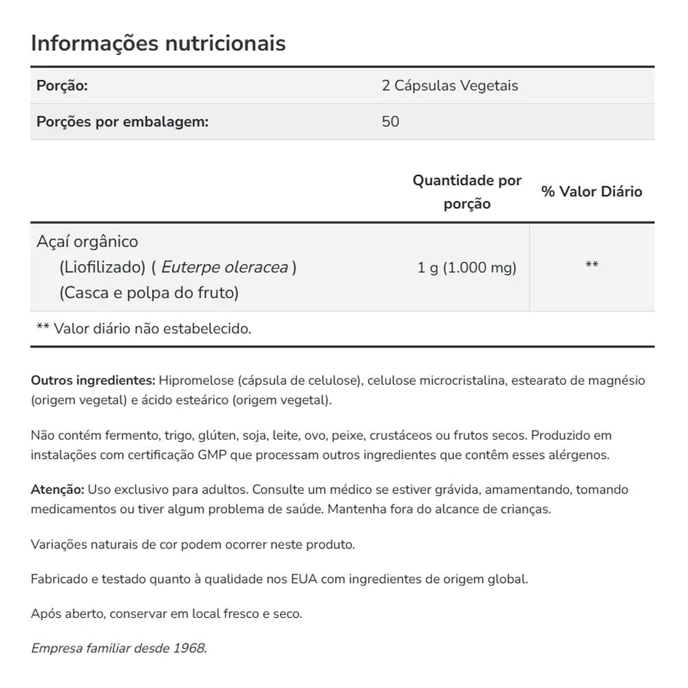 5. Qualidade e Confiança Now Foods: Adquira o Now Foods Acai 500mg 100 Vcaps e invista em um suplemento de alta qualidade. A marca Now Foods é líder, garantindo produtos testados e aprovados que fazem a diferença. Compre agora e sinta a pureza do acai. Validade longa