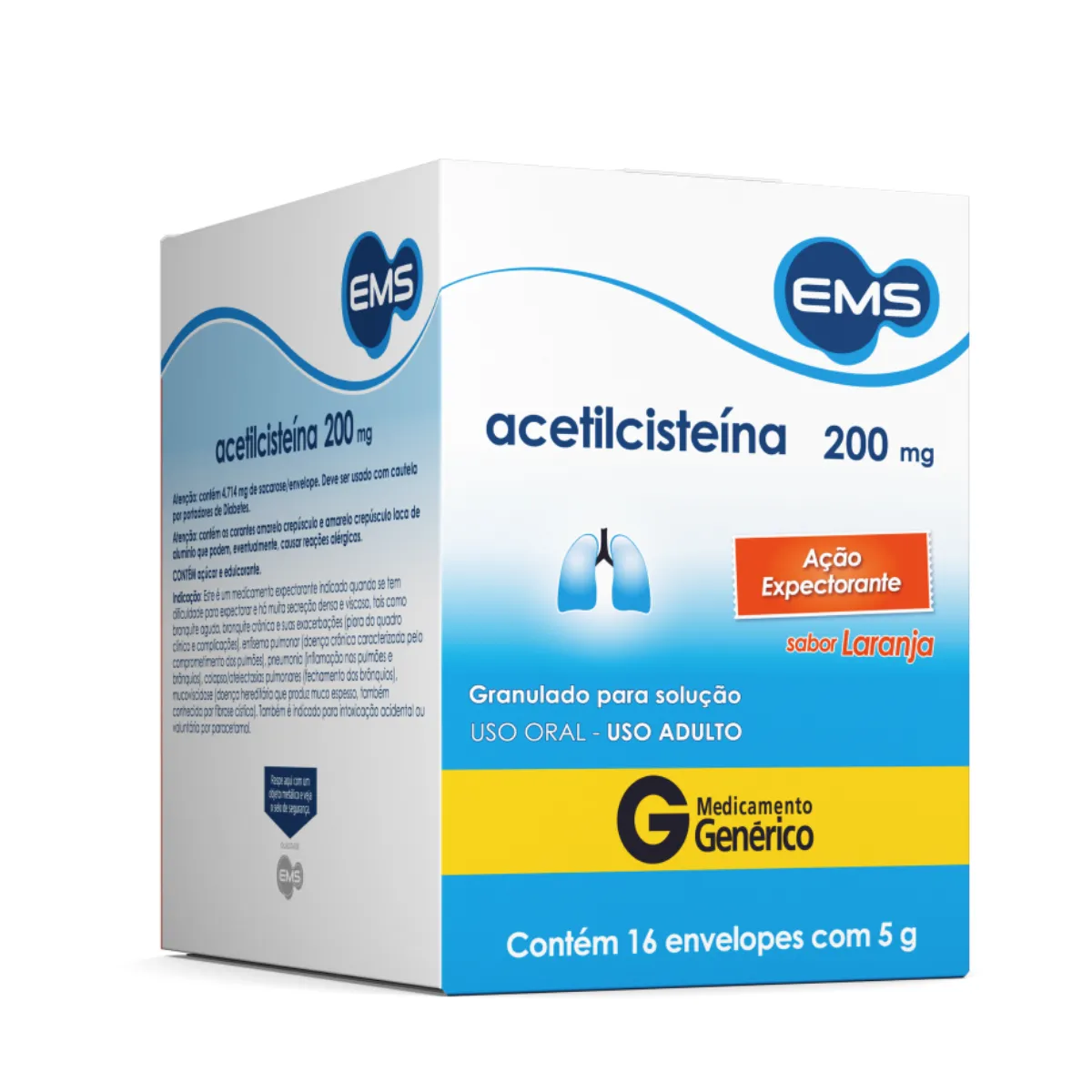 Acetilcisteína 200mg Granulado Sabor Laranja 16 envelopes EMS Genérico