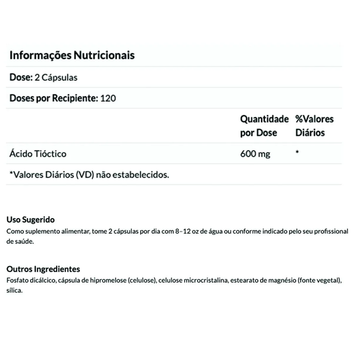 Acido Alfa Lipoico 600 Mg 240 Cápsulas Importado Nutricost