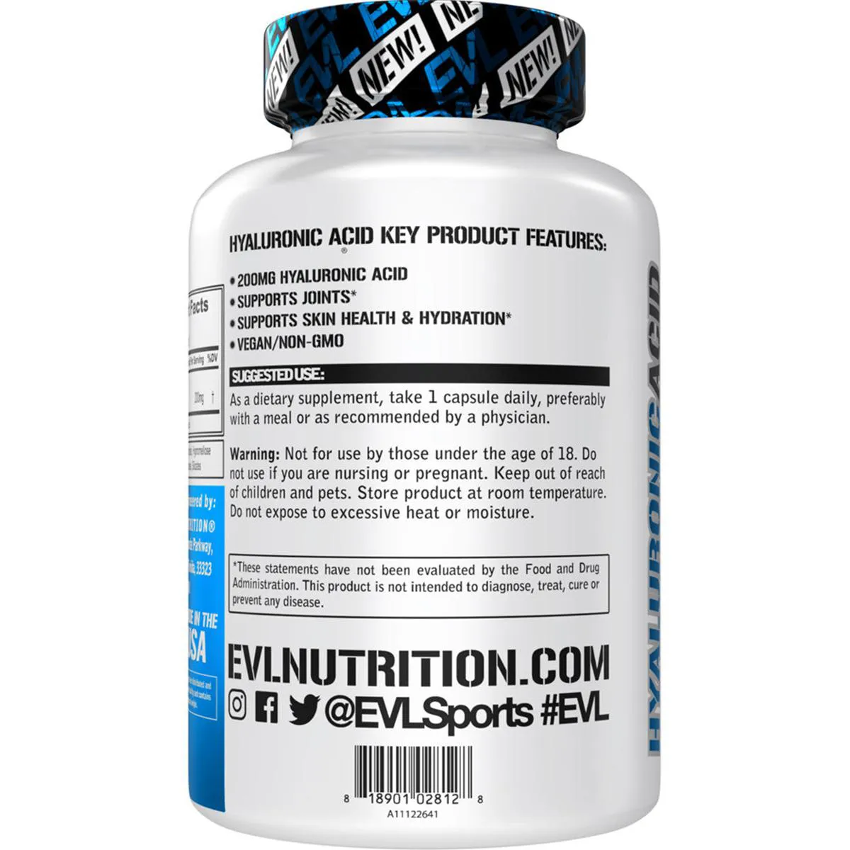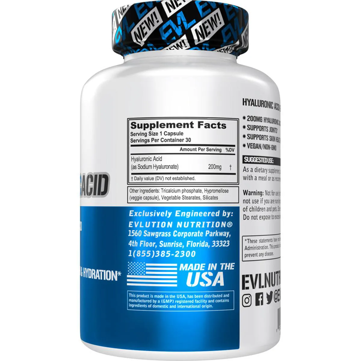Ácido Hialurônico 200mg 30 V cápsulas Evlution Nutrition = Agora