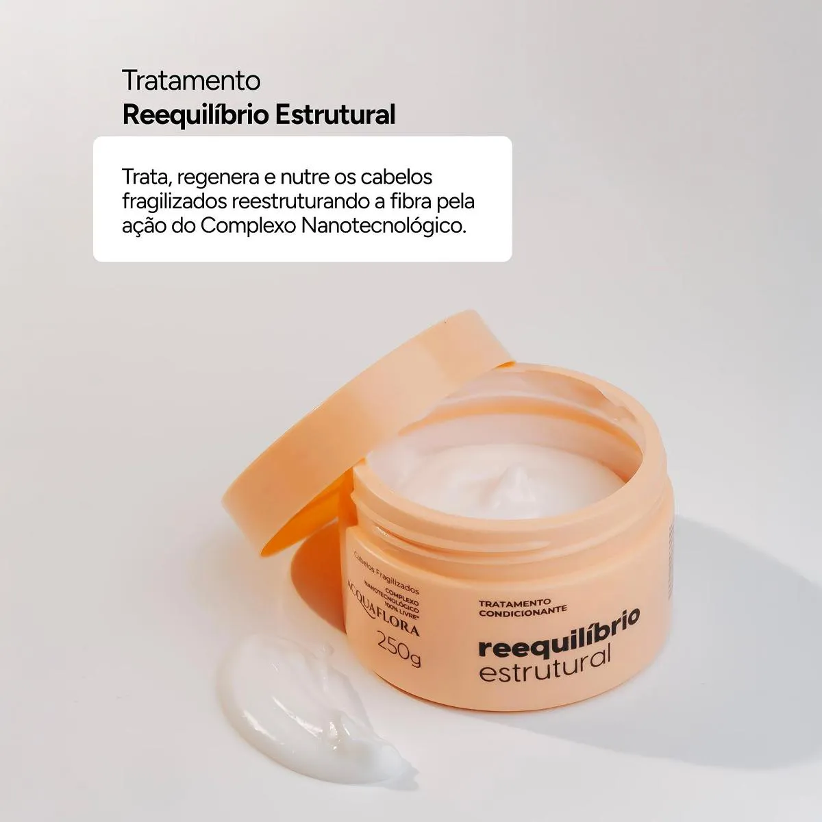 A Acquaflora Reequilíbrio Estrutural é uma máscara capilar desenvolvida para cabelos extremamente danificados, com uma fórmula à base de Complexo Nanotecnológico que combina proteínas, vitaminas e aminoácidos. Serve para promover a reconstrução progressiva da fibra capilar fragilizada, reestruturando e nutrindo intensamente os fios, proporcionando proteção contra danos químicos, reparação intensa, maleabilidade e maciez excepcional aos cabelos.