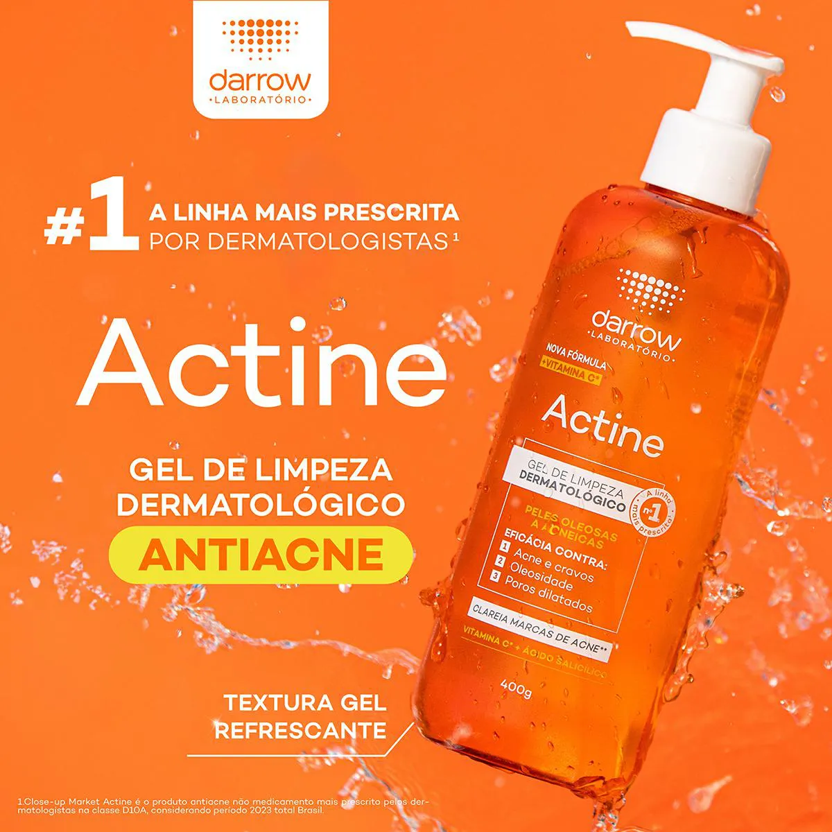 O gel de limpeza Darrow Actine é um grande aliado no tratamento da pele oleosa e acneica. Esta é uma linha expert em pele oleosa, recomendada por dermatologistas que traz em sua fórmula a poderosa vitamina c, que garante profunda higienização facial da pele oleosa e acneica, além de uma combinação exclusiva de ativos dermatológicos antioleosidade e antiacne.