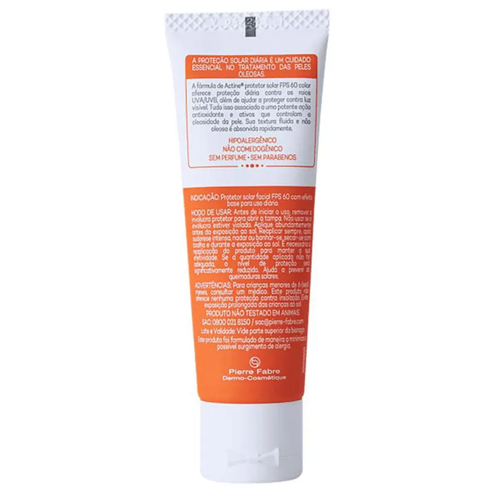Actine protetor solar FPS 60 color oferece alta proteção solar diária contra os raios UVA/UVB, além de ajudar a proteger contra a luz visível. Tudo isso associado a uma potente ação antioxidante, protegendo contra as ações dos radicais livres, prevenindo o envelhecimento e ativos que controlam a oleosidade da pele por 10 horas. Sua textura fluida e não oleosa é absorvida rapidamente. Com tecnologia smart color, sua cor se adapta a todos os tons de pele.