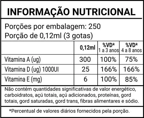 Triglicerídeos de Cadeia Média, Acetato de DL-alfa-tocoferol (vitamina e), Acetato de Retinol (Vitamina A), Colecalciferol (Vitamina D3), Aroma Natural de Morango.