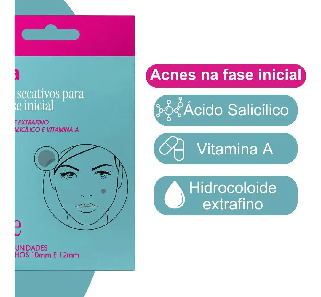 O adesivo secativo Ricca foi desenvolvido para auxiliar no tratamento de espinhas em fase inicial, promovendo uma recuperação mais rápida e discreta da pele. Sua fórmula com hidrocoloide extrafino, ácido salicílico e vitamina A ajuda a controlar a oleosidade, reduzir a inflamação e proteger a área afetada contra impurezas externas.