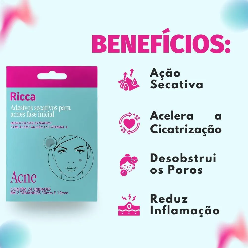 Adesivos Secativos Para Acnes Ricca Fase Inicial Com 24 Unidades Cód. 3866