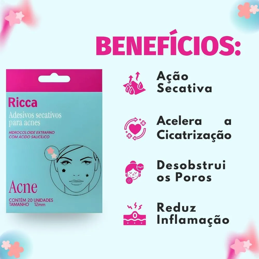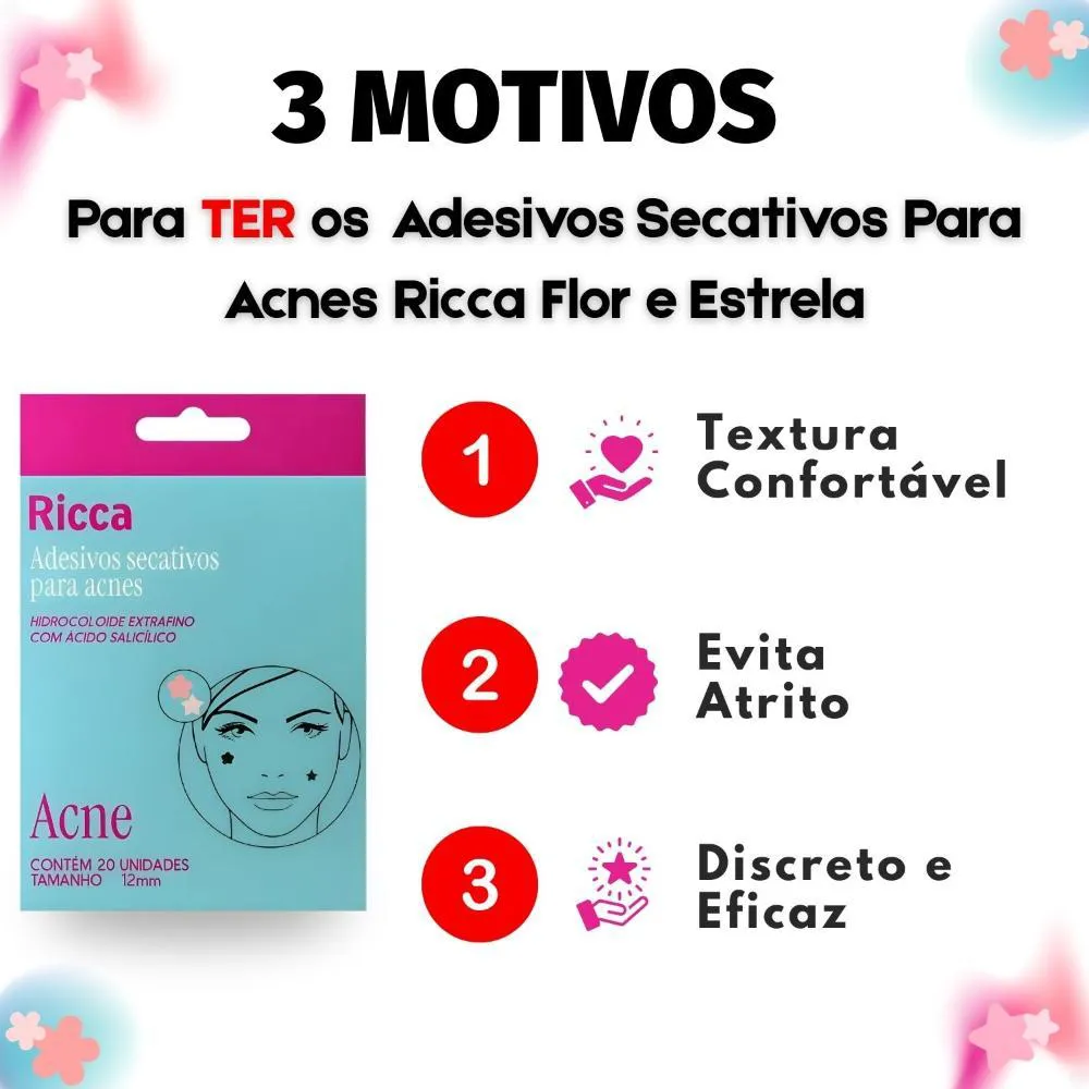 Adesivos Secativos para Acnes Ricca Flor e Estrela com 20 Unidades Cód. 3868