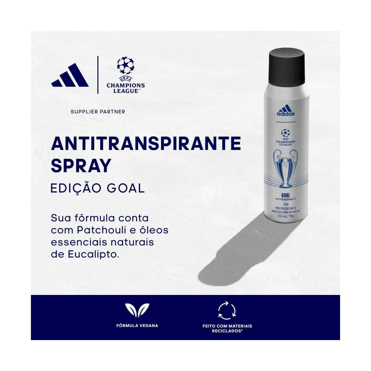 O Antitranspirante Adidas Uefa Goal é um desodorante em spray desenvolvido para oferecer até 72 horas de proteção contra o suor e os odores indesejados. Com fórmula sem silicone e vegana, garante frescor prolongado, fragrância exclusiva e sensação de proteção seca. Ideal para quem busca confiança e bem-estar durante todo o dia.