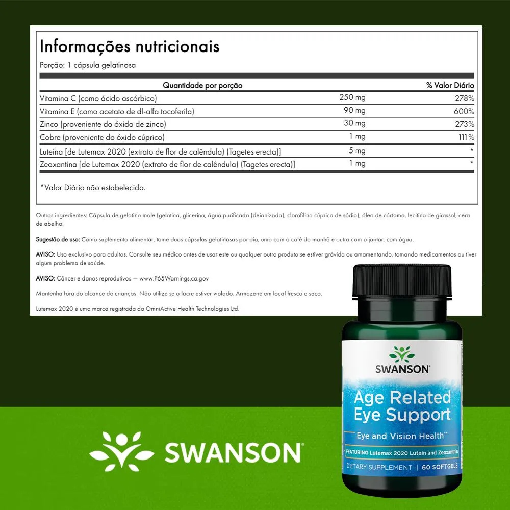 5. Ideal para quem busca um suplemento ocular completo, com ingredientes de origem vegetal e cápsulas importadas. Swanson Lutemax 2020 combina luteína, zeaxantina e antioxidantes, oferecendo um cuidado diário para a visão de forma prática e segura, dentro de uma rotina moderna. Validade longa