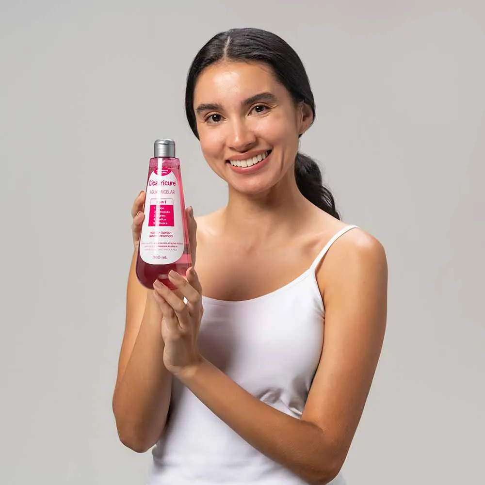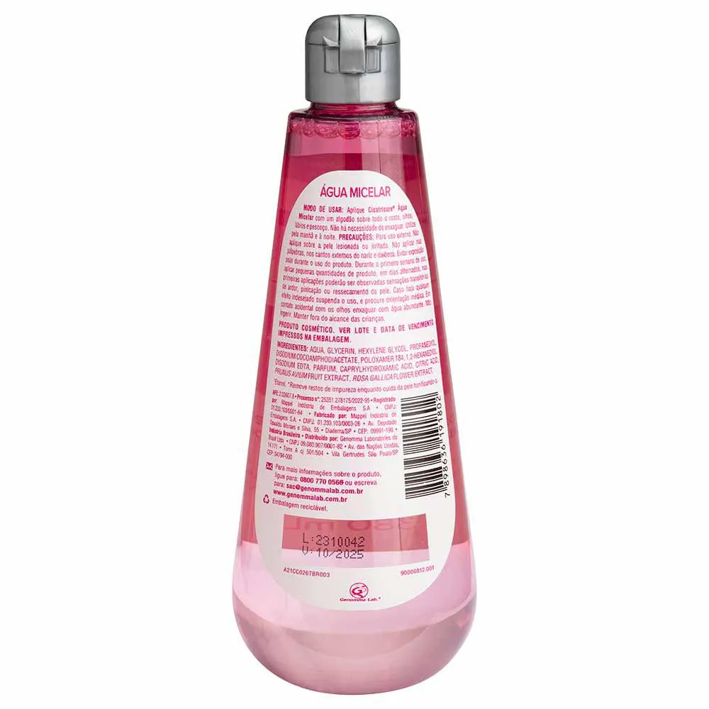 Cicatricure Água Micelar é uma nova tecnologia em limpeza facial. Contém micelas que, com uma única passada, atuam como ímãs para capturar a sujeira, a maquiagem e a oleosidade da pele. Sua exclusiva fórmula de alta performance contém derivados de coco e girassol, e: limpa profundamente, remove a maquiagem, desobstrui os poros, tonifica e refresca. Além disso, é extremamente suave e isenta de álcool, parabenos, sulfatos e etoxilados. Acalma a pele e deixa uma sensação de frescor e suavidade.