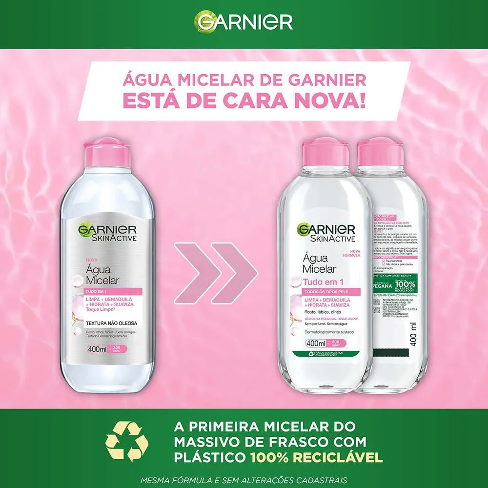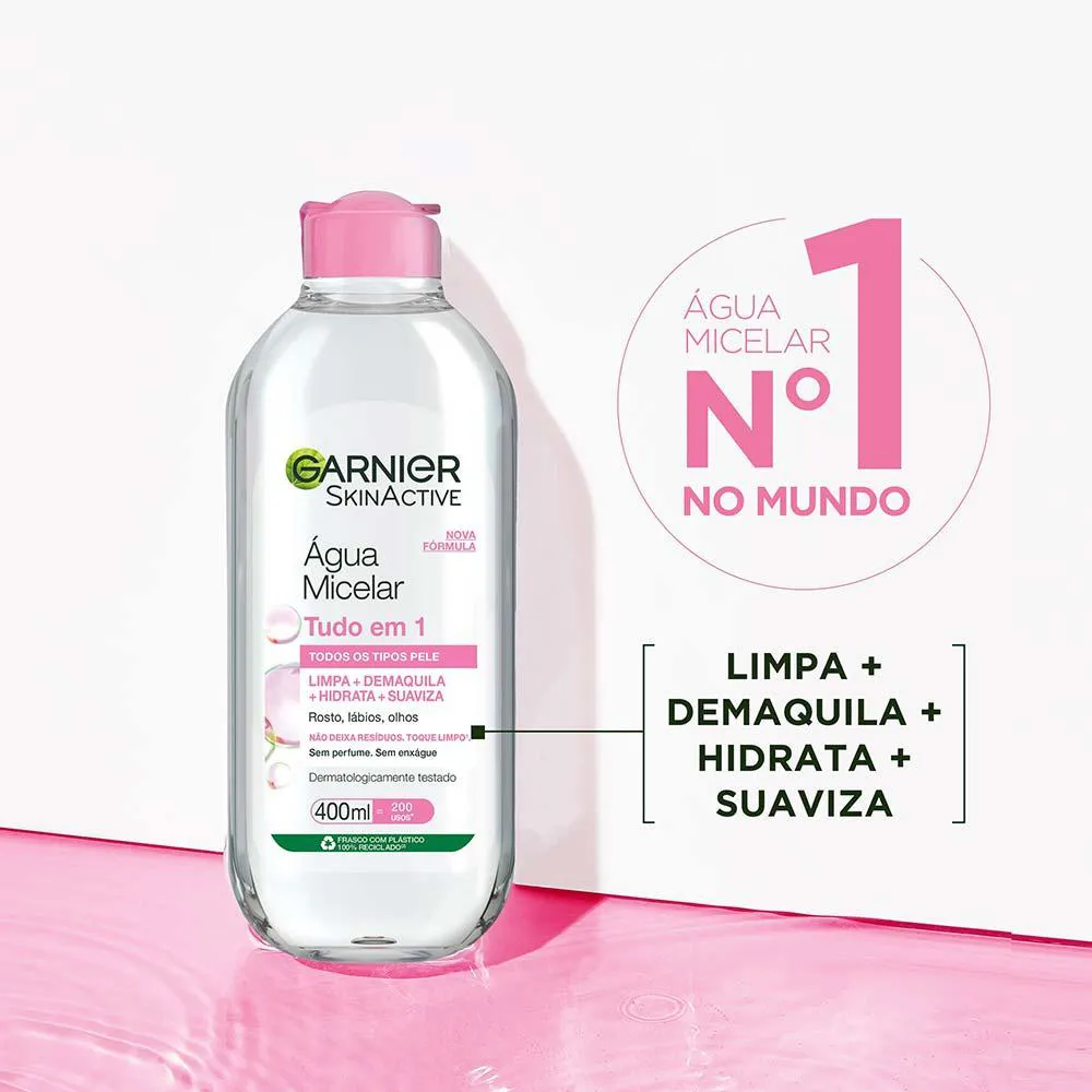 Água Micelar de Limpeza, Demaquilante Tudo em 1 que Limpa, Tonifica e Remove Oleosidade, Garnier SkinActive