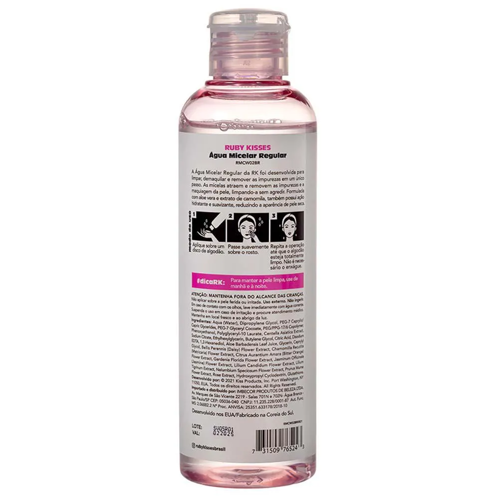 A Ruby Kisses expande sua linha de skincare com a Água Micelar Regular, produto ideal para complementar os cuidados com a pele e garantir uma limpeza profunda. Produzida na Coréia do Sul, possui a mesma qualidade, eficácia e inovação dos cosméticos coreanos, conhecidos como K-Beauty. Sua fórmula foi desenvolvida para higienizar, demaquilar e remover as impurezas da face de uma só vez, ela reequilibra e absorve toda sujeira da tez, sem agredir as camadas de proteção da mesma. Dermatologicamente testadas.