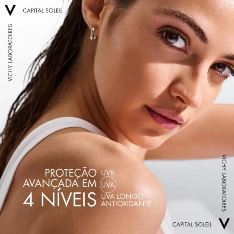 Descubra a inovação de Vichy Capital Soleil com a Água Protetora Solar Iluminadora. Desenvolvida para quem busca alta proteção e um bronzeado duradouro, sua textura aquosa ultraleve é um convite para uma pele radiante e protegida com a segurança dermatológica de Vichy. Cansado de protetores solares pesados que deixam a pele pegajosa? A Água Protetora Iluminadora Solar Corporal FPS50 de Vichy Capital Soleil resolve esse problema com sua revolucionária fórmula bifásica de textura aquosa, que é absorvida de forma instantânea. Enriquecida com Beta-Caroteno e vitamina e, ela não só oferece proteção avançada contra raios UVB, UVA, UVA longo e radicais livres, mas também prolonga seu bronzeado por até um mês.
