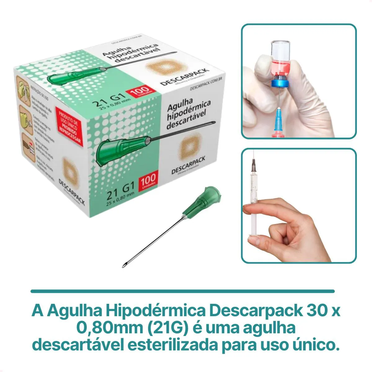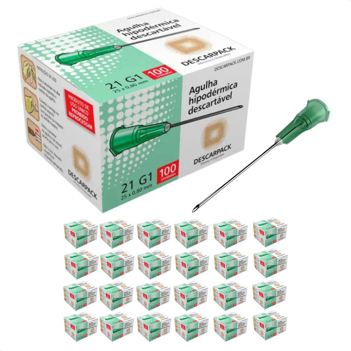 Agulha Descartável 21G 30 X 0,80Mm Descarpack (2400 Agulhas)