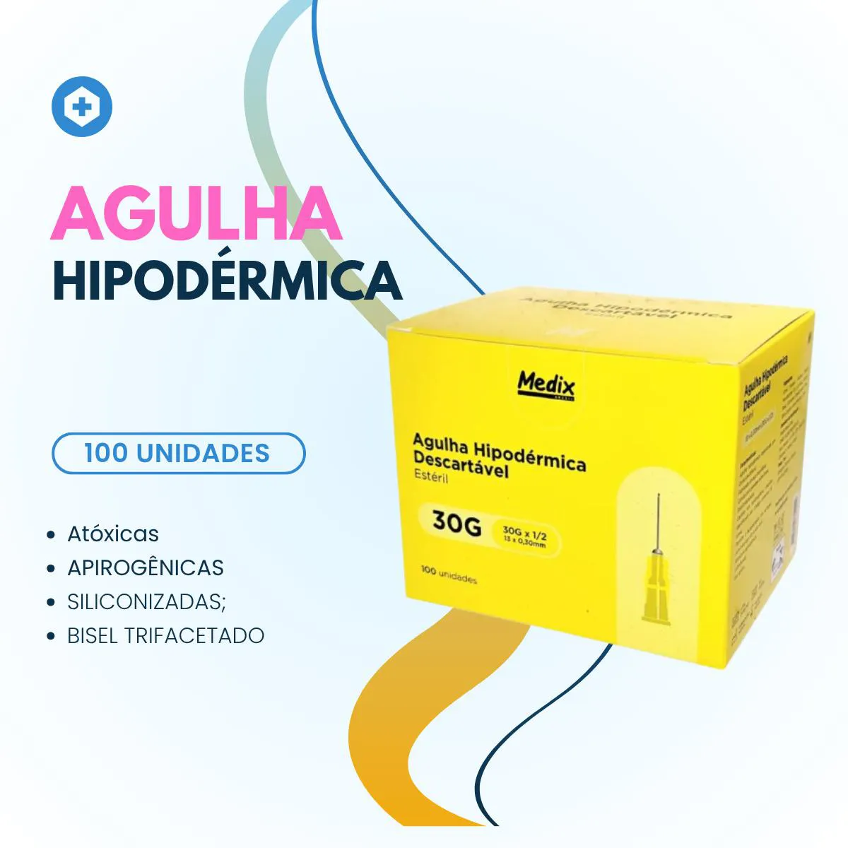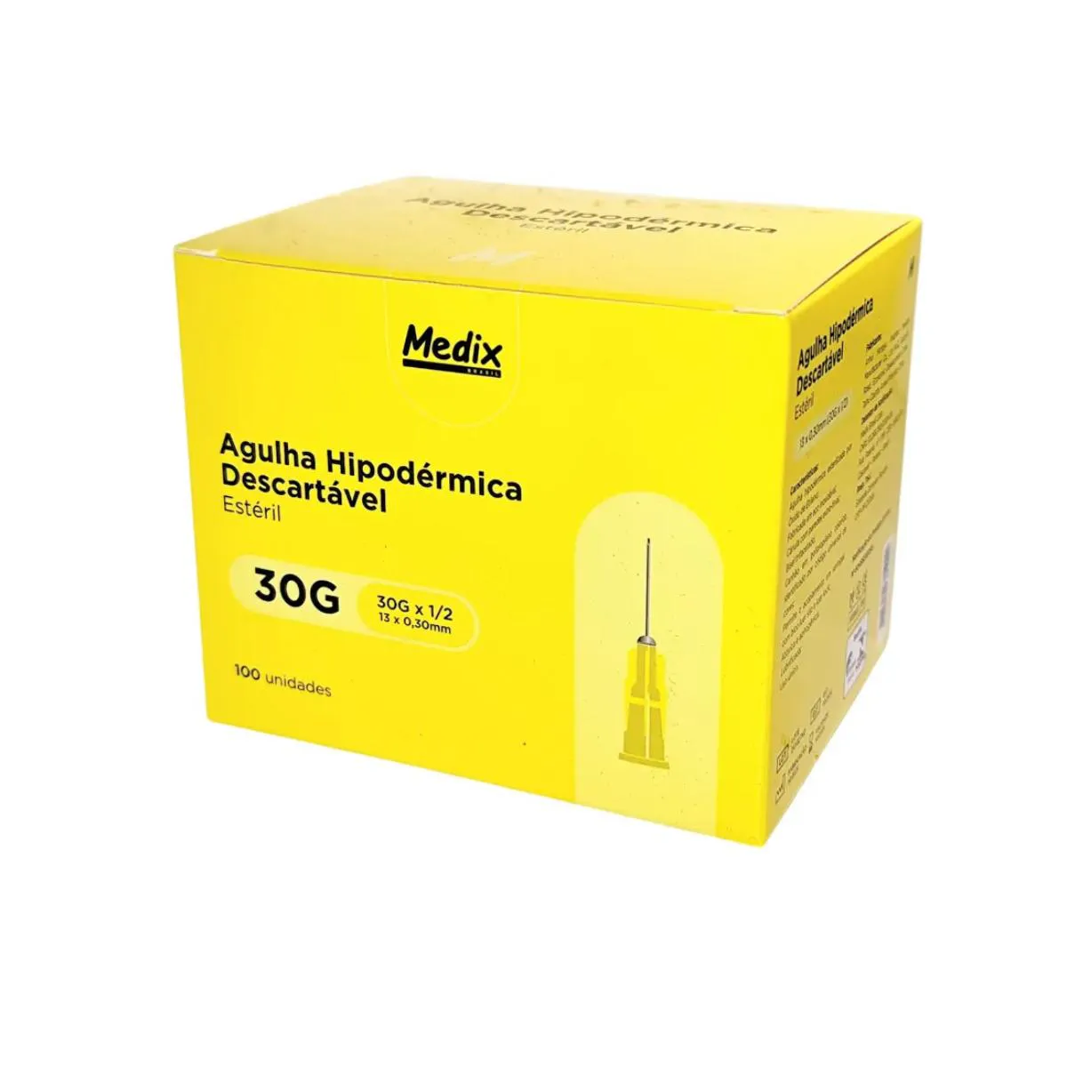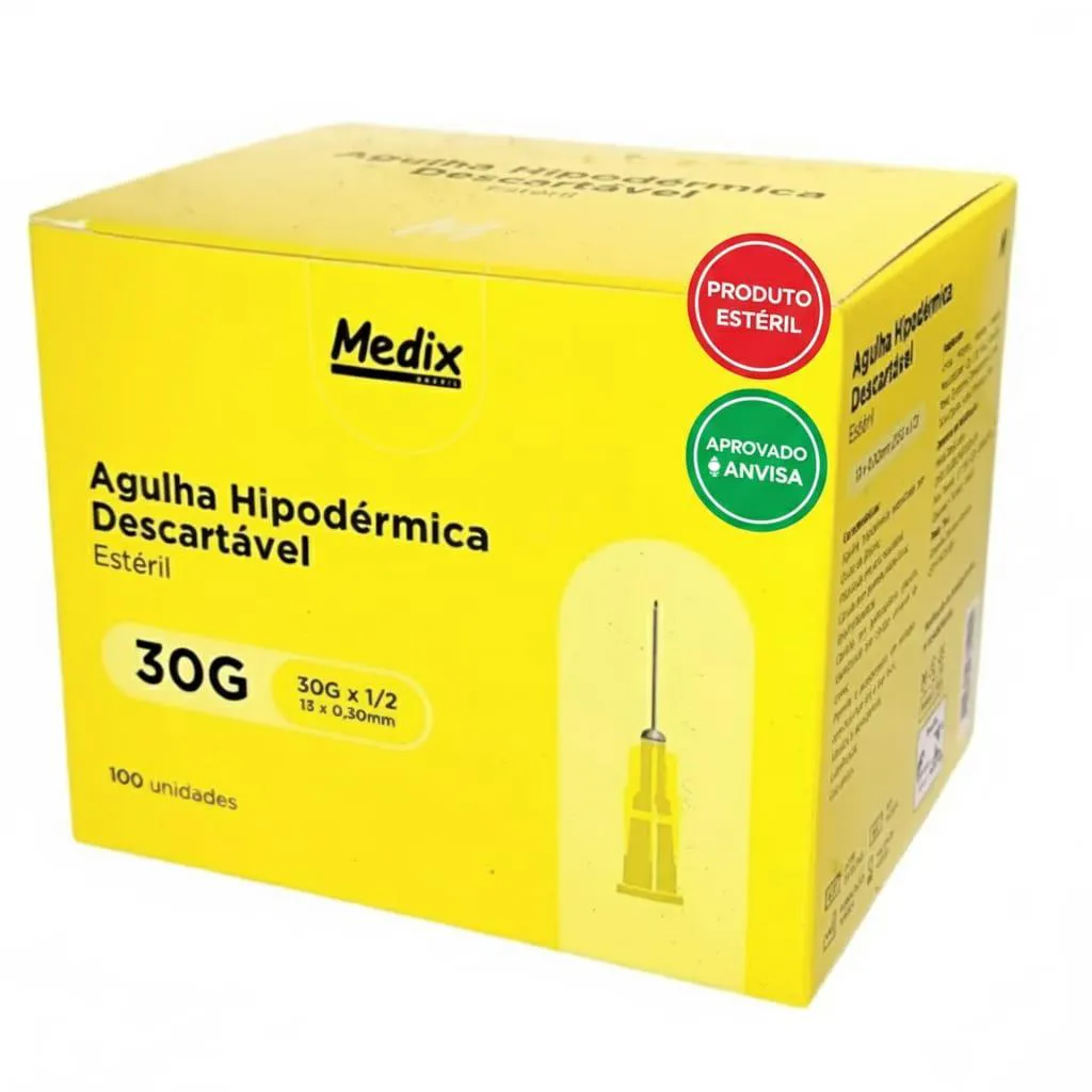 Agulha Hipodérmica Descartável 13Mm X 0,3Mm -Medix 100 Un