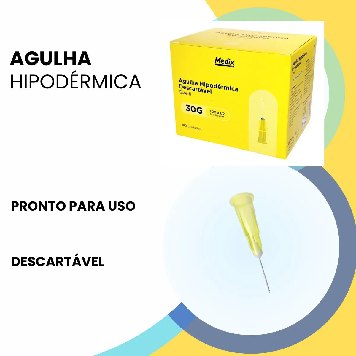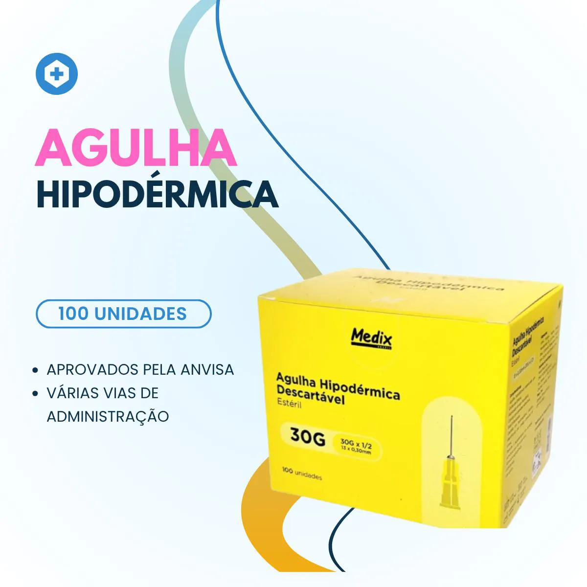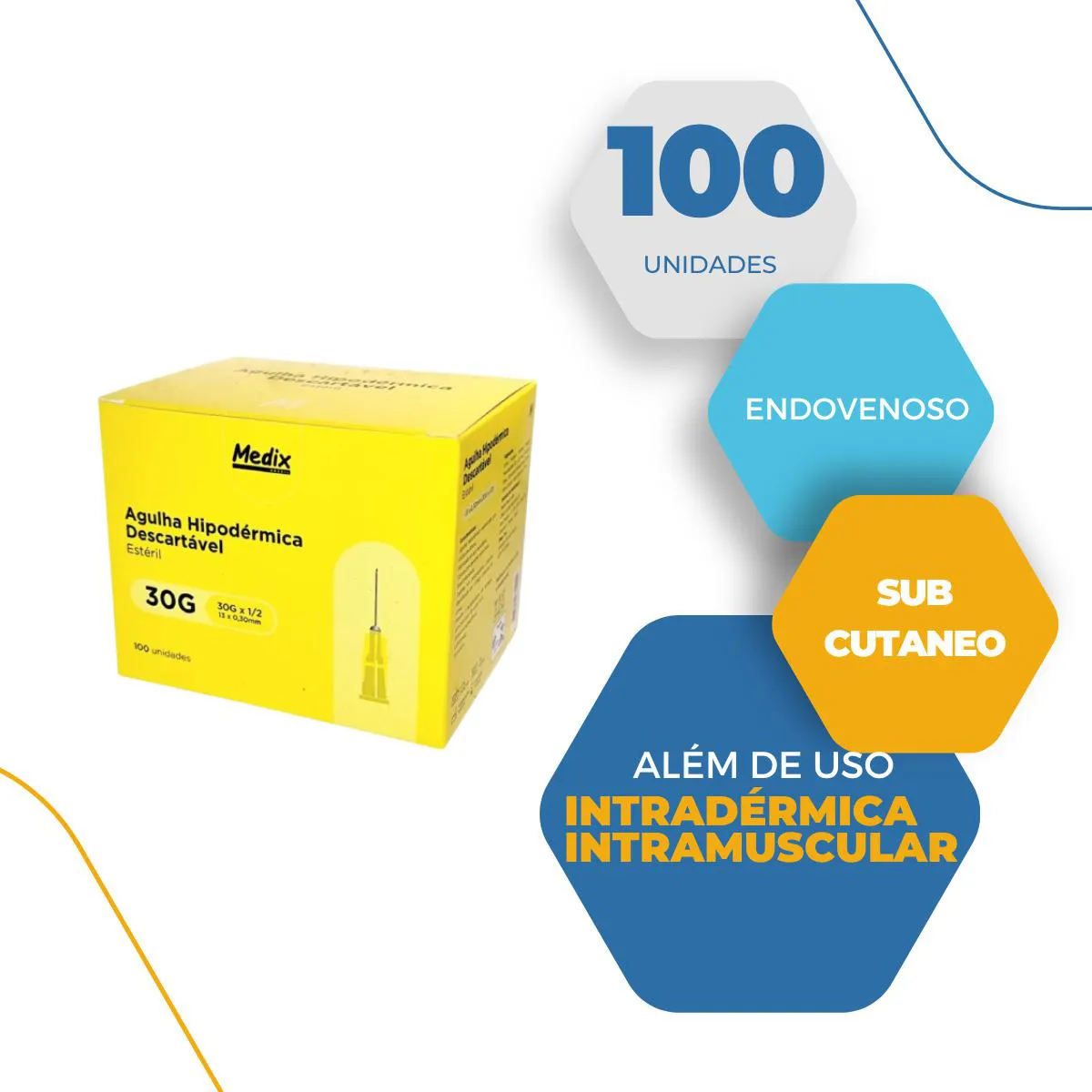 Agulha Hipodérmica Descartável 13Mm X 0,3Mm -Medix 100 Un