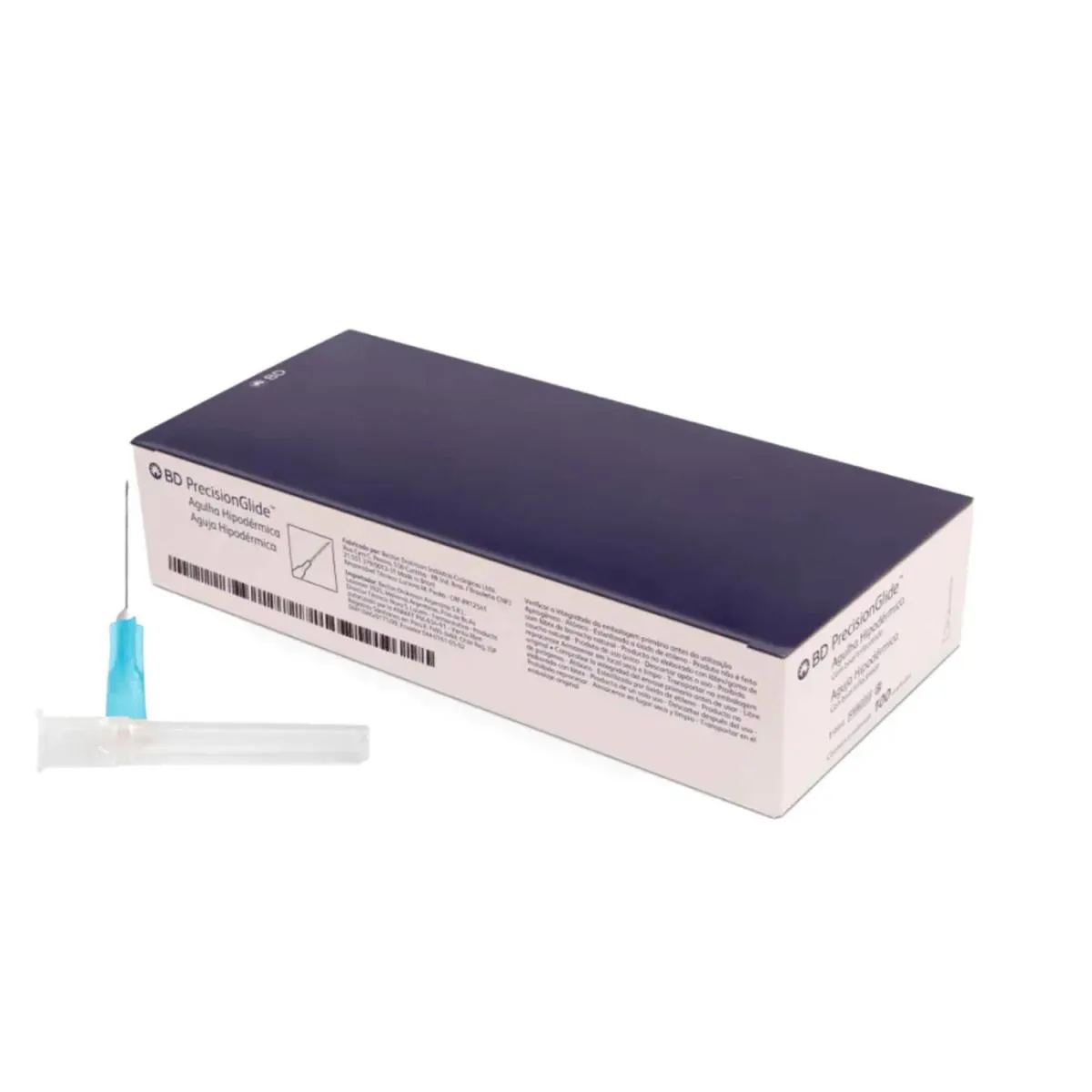 A Agulha hipodérmica descartável estéril 23G BD é uma agulha de alta qualidade projetada para a aplicação de soluções injetáveis em diversas vias de administração. Com 100 unidades por embalagem, as agulhas são estéreis, apirogênicas e embaladas individualmente para garantir a segurança e integridade do produto. Sua cor Azul identifica o calibre, e sua construção assegura maior resistência e precisão durante as injeções. A Agulha hipodérmica descartável estéril 23G BD é amplamente utilizado em procedimentos médicos e de enfermagem, como a aplicação de vacinas, medicamentos intramusculares, subcutâneos e intravenosos, bem como em coletas de amostras de sangue. É indicado para uso em hospitais, clínicas e consultórios, sendo uma ferramenta essencial para a administração de terapias medicamentosas e para exames laboratoriais, oferecendo conforto e segurança tanto para os pacientes quanto para os profissionais de saúde.Benefícios e Diferenciais