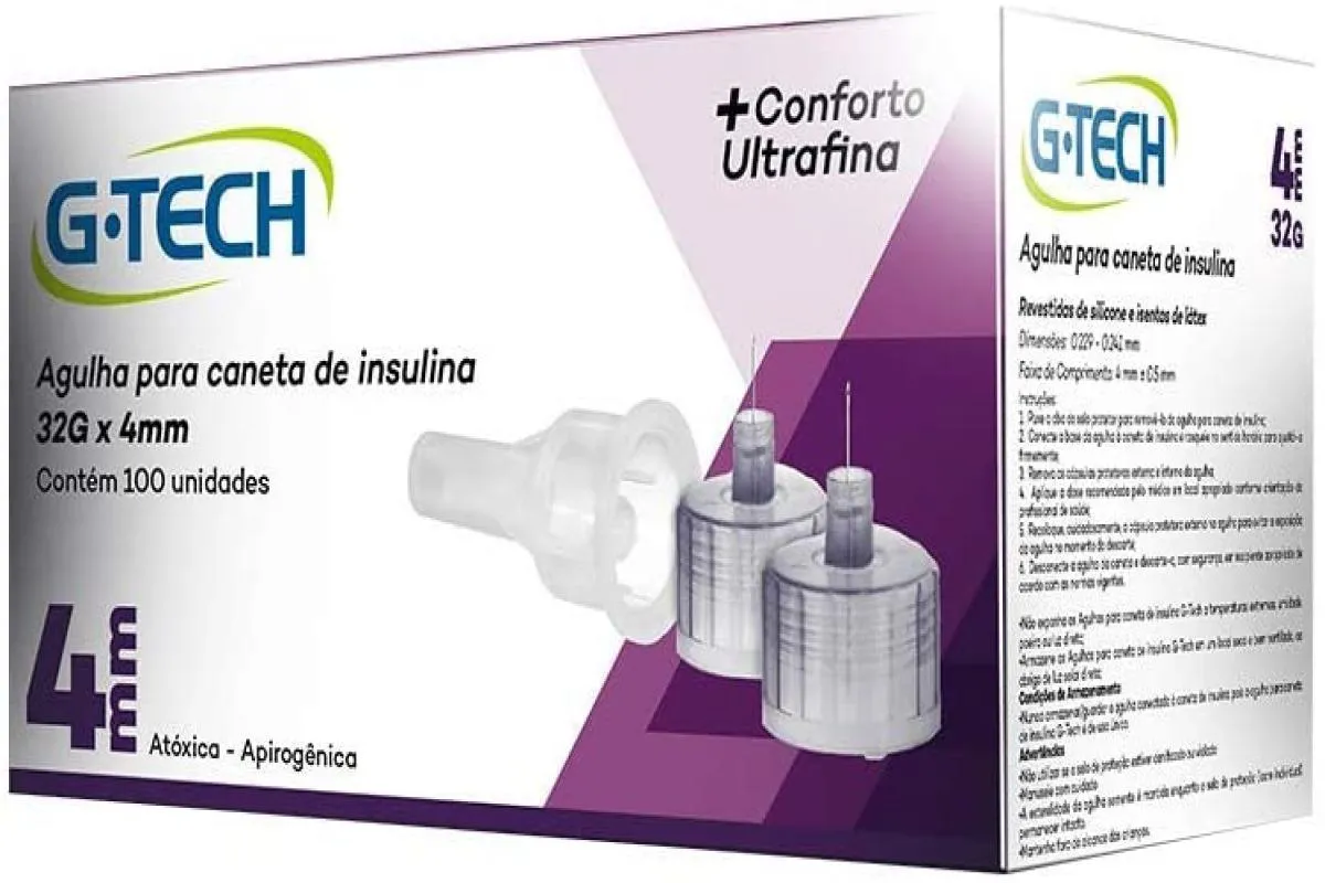 Agulha para Caneta de Insulina G-tech 4mm 32g Caixa com 100