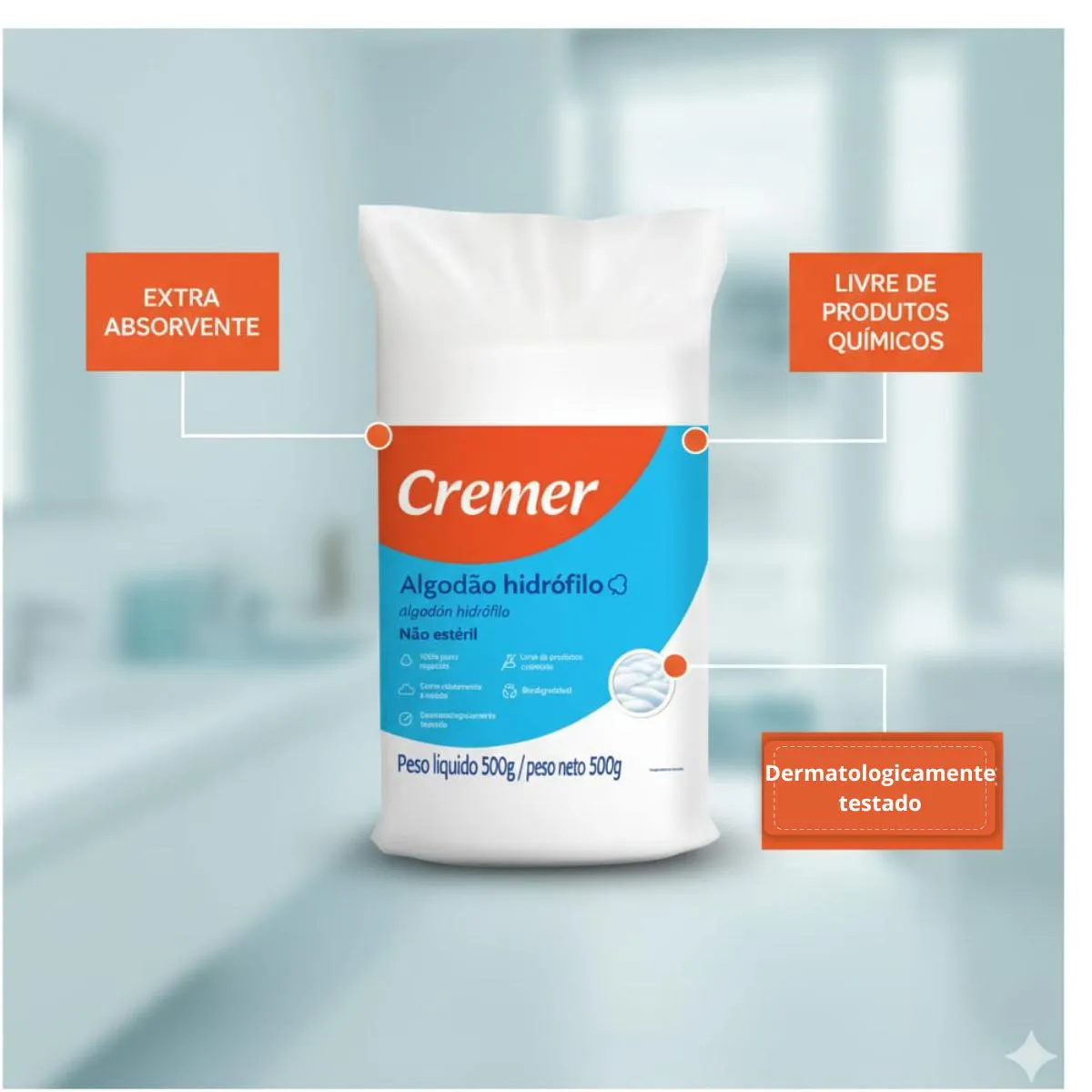 Algodão Hidrófilo 500 G Cremer Pacote 100 % Algodão 1 Unidade