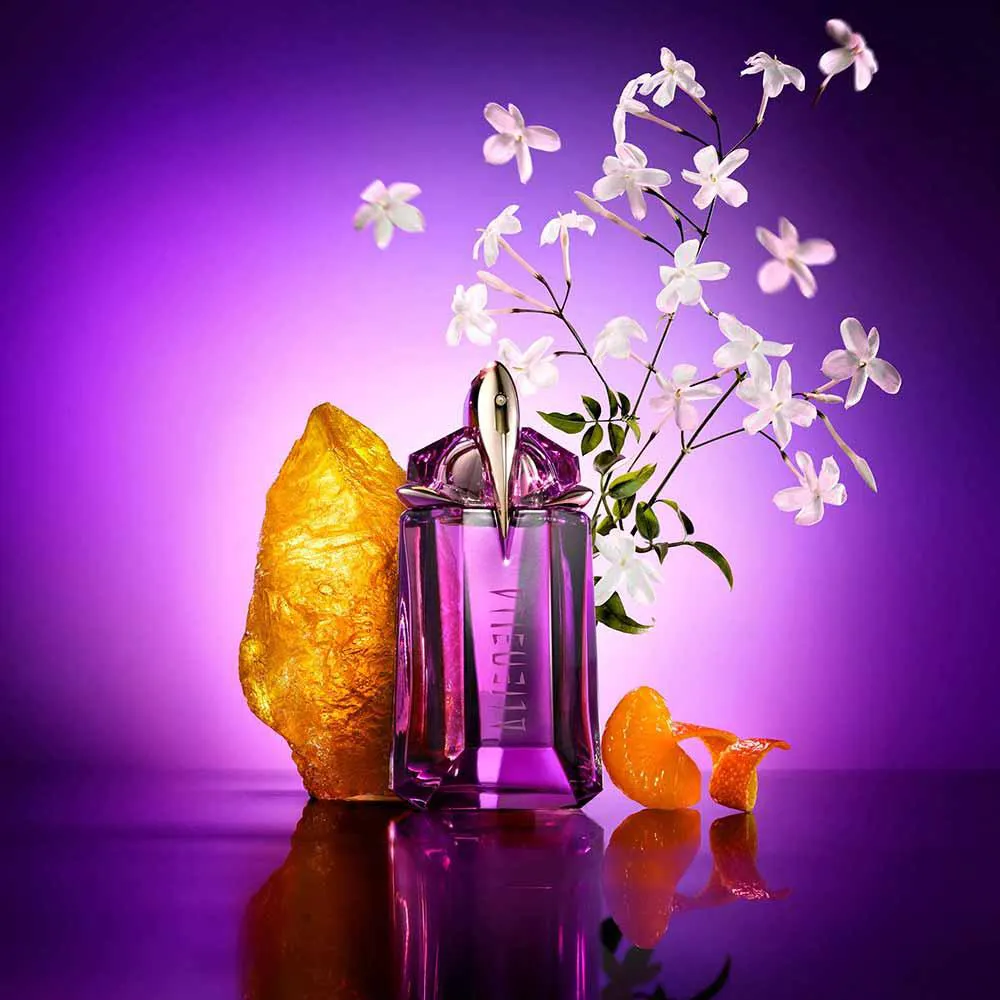 Novo elixir. Um âmbar atual, assinado por Thierry Mugler. Quente, suave e precioso, seu componente libera um perfume intenso. Uma forte vibração.