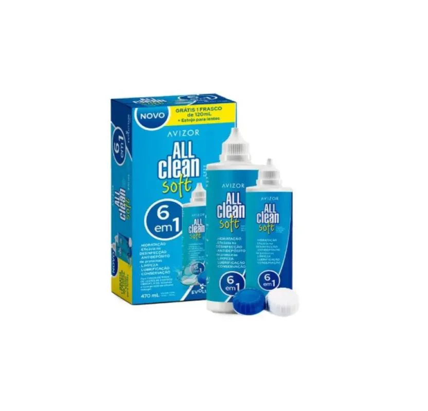 All Clean Soft Solução para Lentes de Contato 350Ml + 120Ml + Estojo Avizor