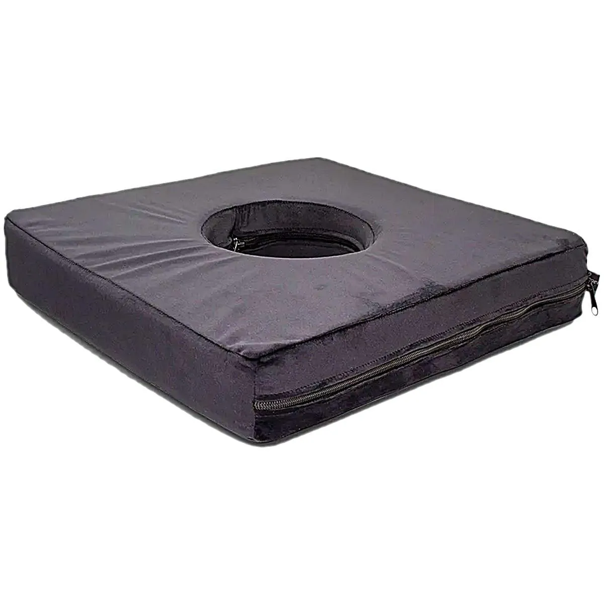 Possui design com orifício central que proporciona alívio da pressão na região do cóccix.