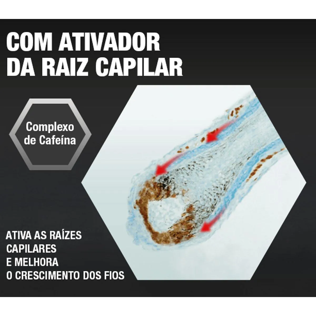 - Estimula as raízes capilares com ação comprovada do Complexo de Cafeína.