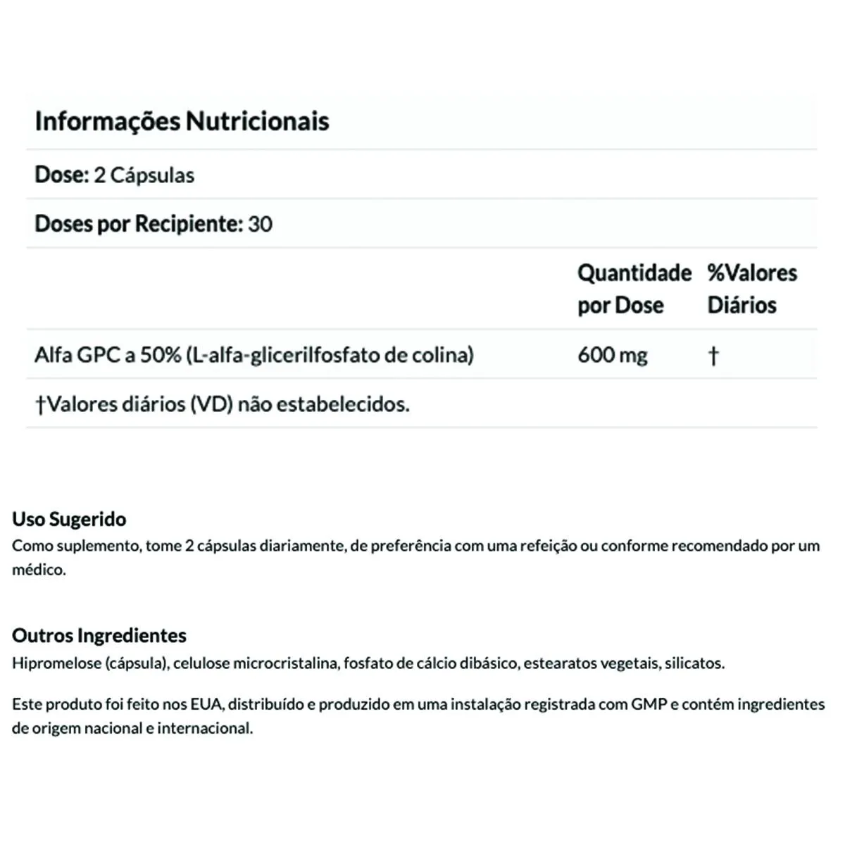 ATENÇÃOProduto original importadoProduto disponível no BrasilSUGESTÃO DE USO: Tomar 2 cápsulas por dia com água ou conforme indicado pelo seu profissional de saúde.