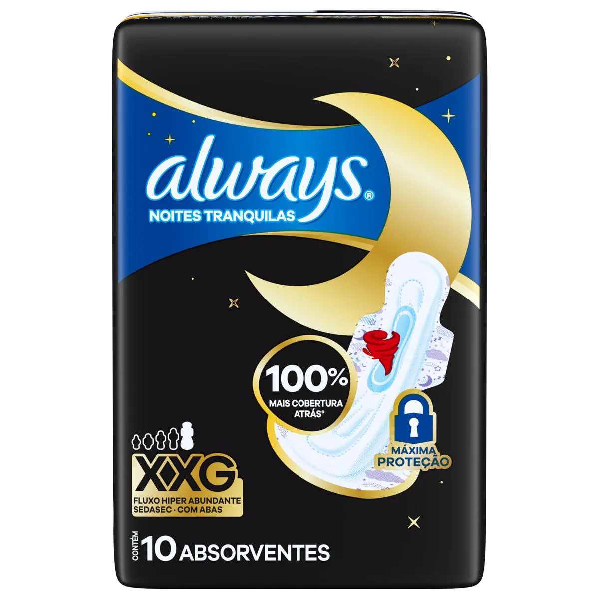 Absorvente Always Noites Tranquilas Seca XXG Com Abas 10 unidades
