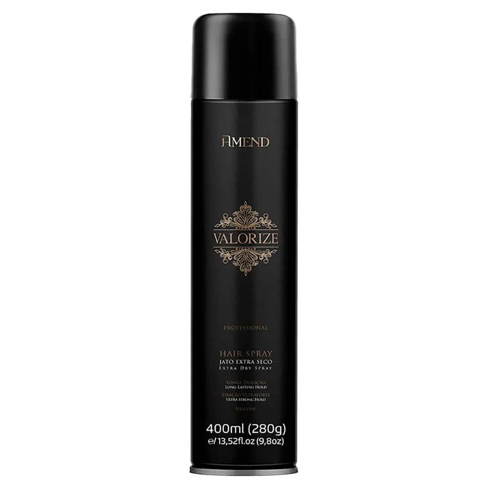 Hair Spray Ultraforte Valorize Amend é um spray de fixação ultraforte de longa duração, ideal para definir e finalizar com alta performance qualquer tipo de penteado, mechas e franjas sem pesar nos fios. Possui alta resistência à umidade, realça o brilho e protege o cabelo através da combinação de Silicone. Não deixa resíduos no fio.