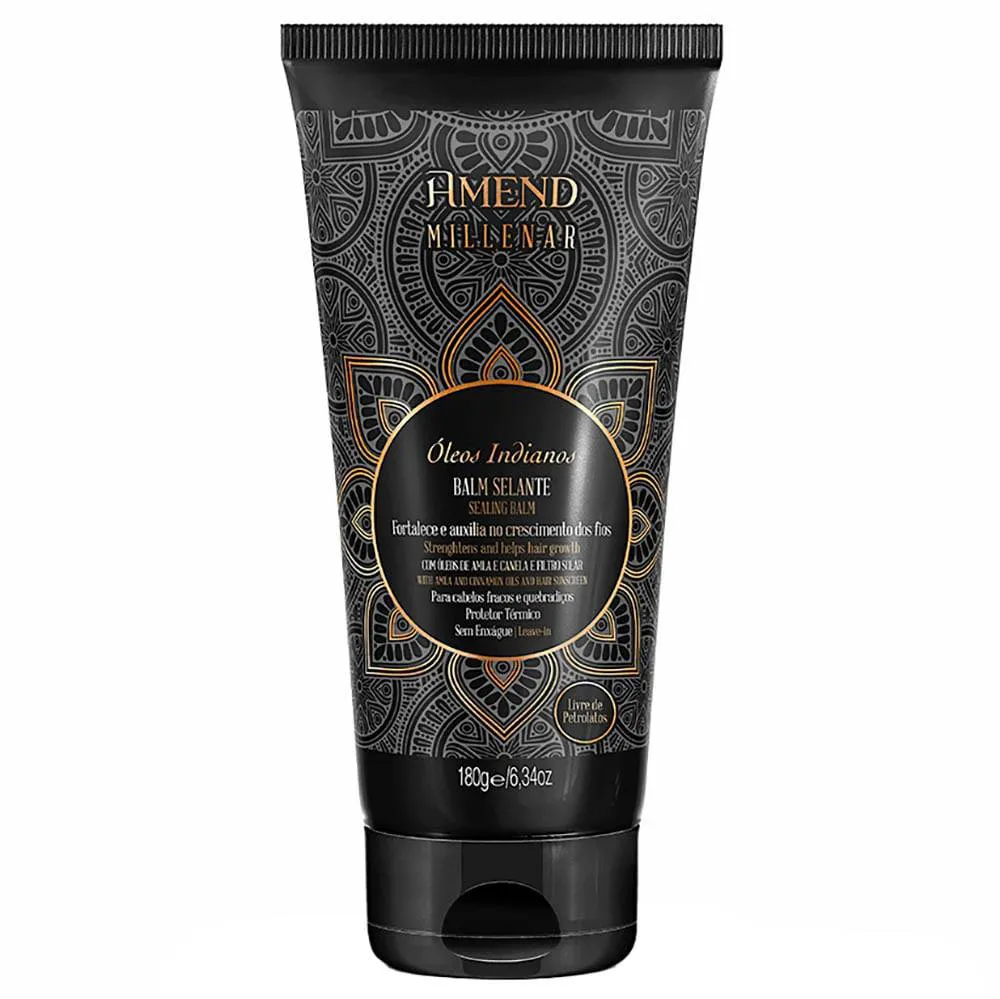 Balm Selante Amend Millenar Óleos Indianos - Inspirados na beleza dos cabelos das mulheres indianas, desenvolvemos um Balm Selante que protege do calor do secador e das agressões causadas pelos raios UVs, melhorando a penteabilidade e disciplinando os fios, enquanto proporciona força e vitalidade para os cabelos fracos e quebradiços crescerem fortes e saudáveis, devido à combinação fortalecedora do Óleo de Amla, tonificante do Óleo de Canela e reparadora do Tri-Fort Complex.