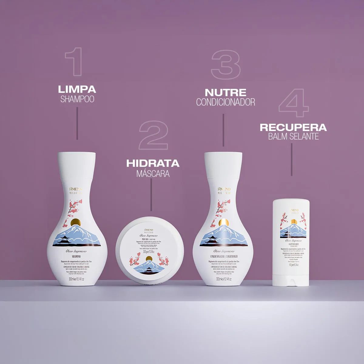 Amend Millenar Óleos Japoneses - Força, Vitalidade e Crescimento Saudável Limpa suavemente, fortalece a fibra capilar e estimula o crescimento saudável. Formulado com óleo de flor de cerejeira, ginseng e o exclusivo pro-reparage complex. Previne queda e enfraquecimento, garantindo fios hidratados, resistentes, brilhantes e cheios de vitalidade.