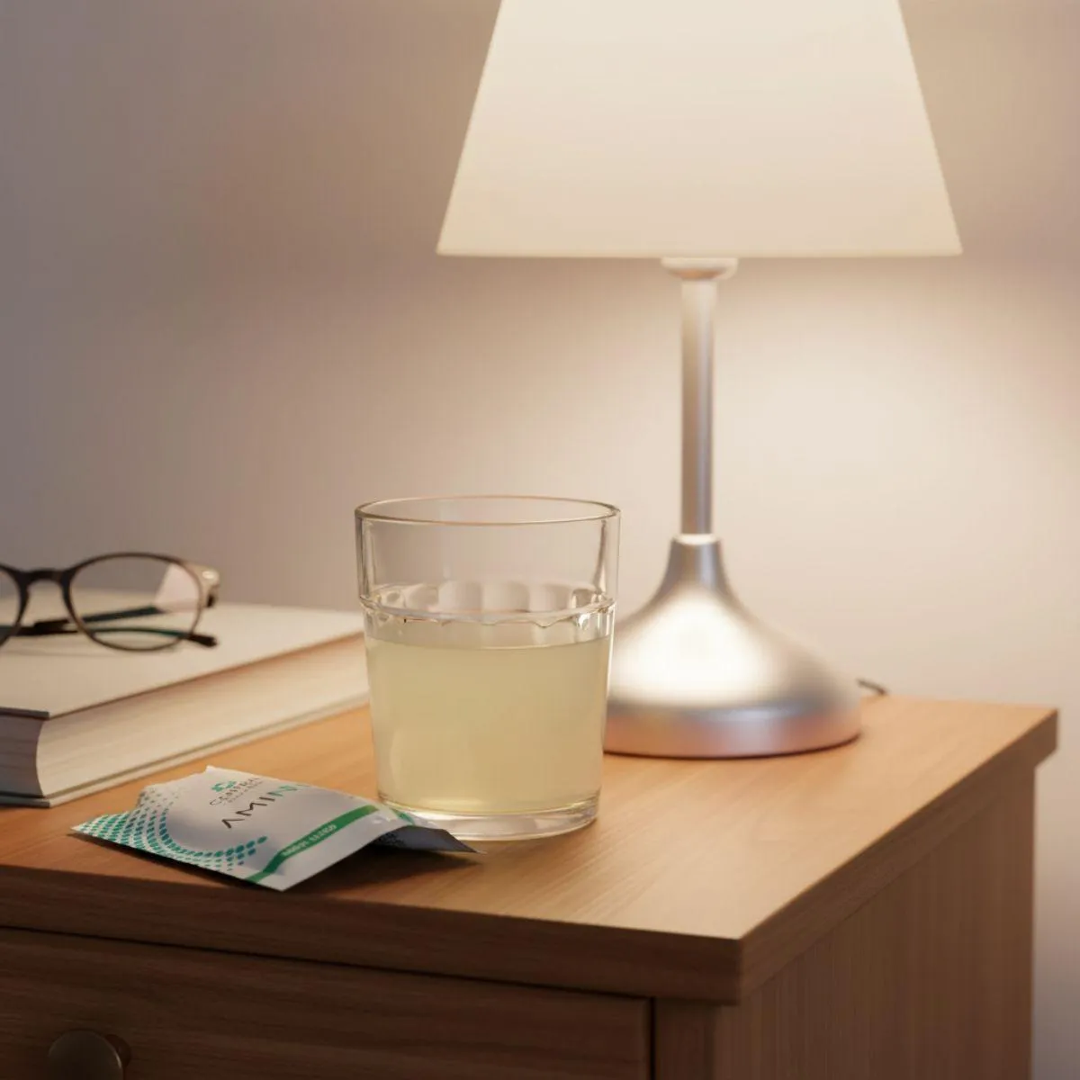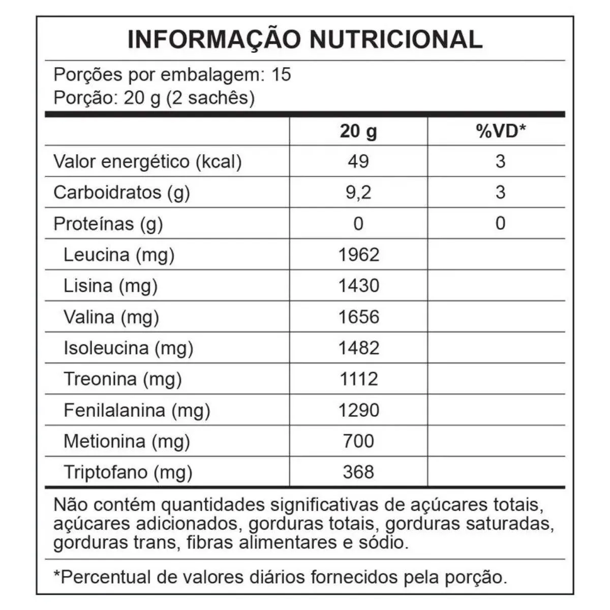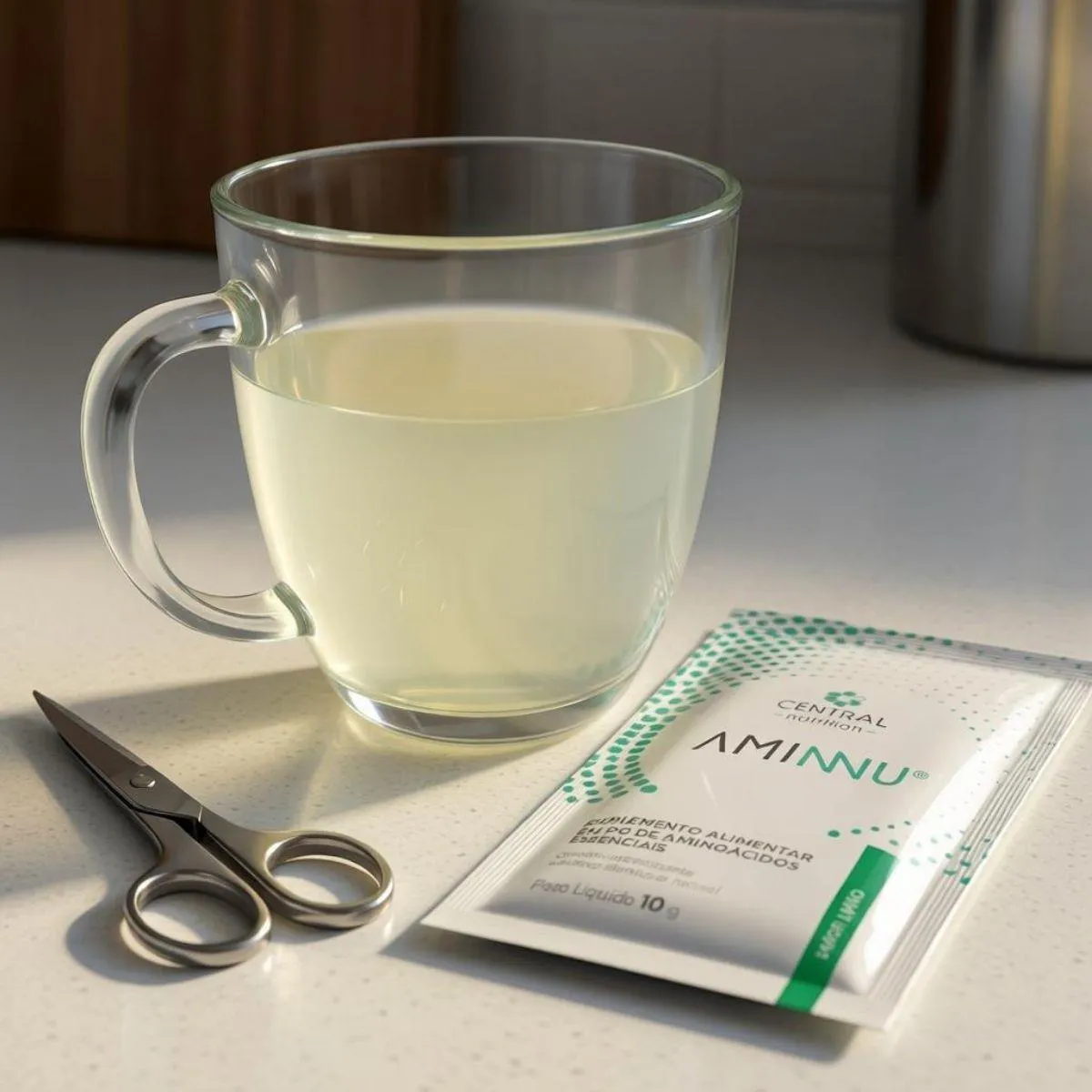 - Suplemento de aminoácidos essenciais em sachês.
