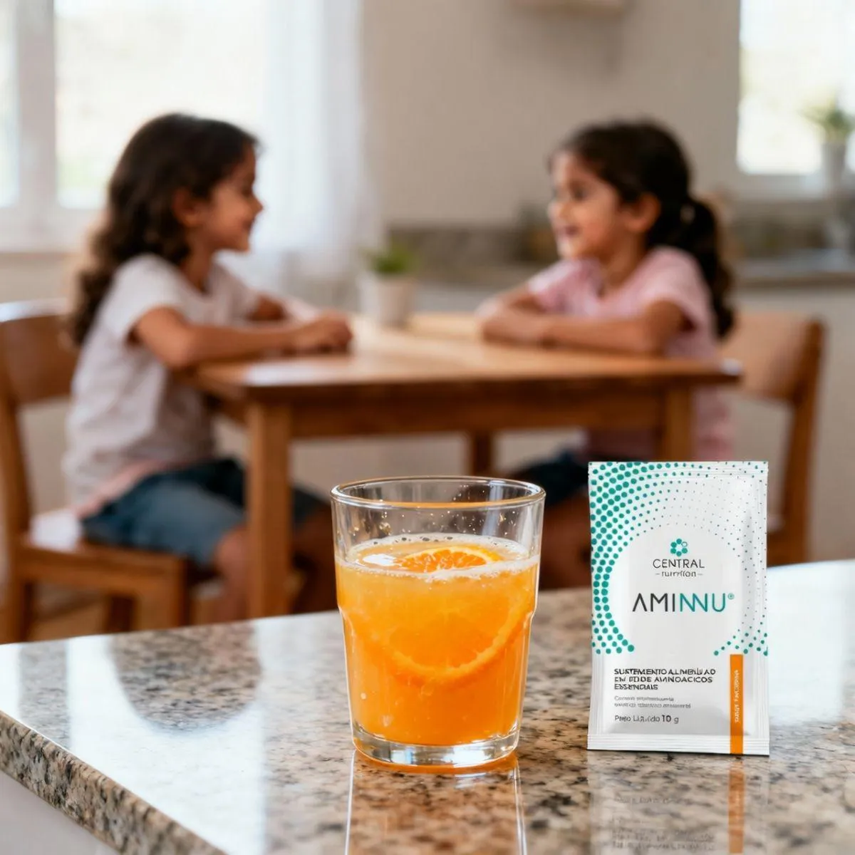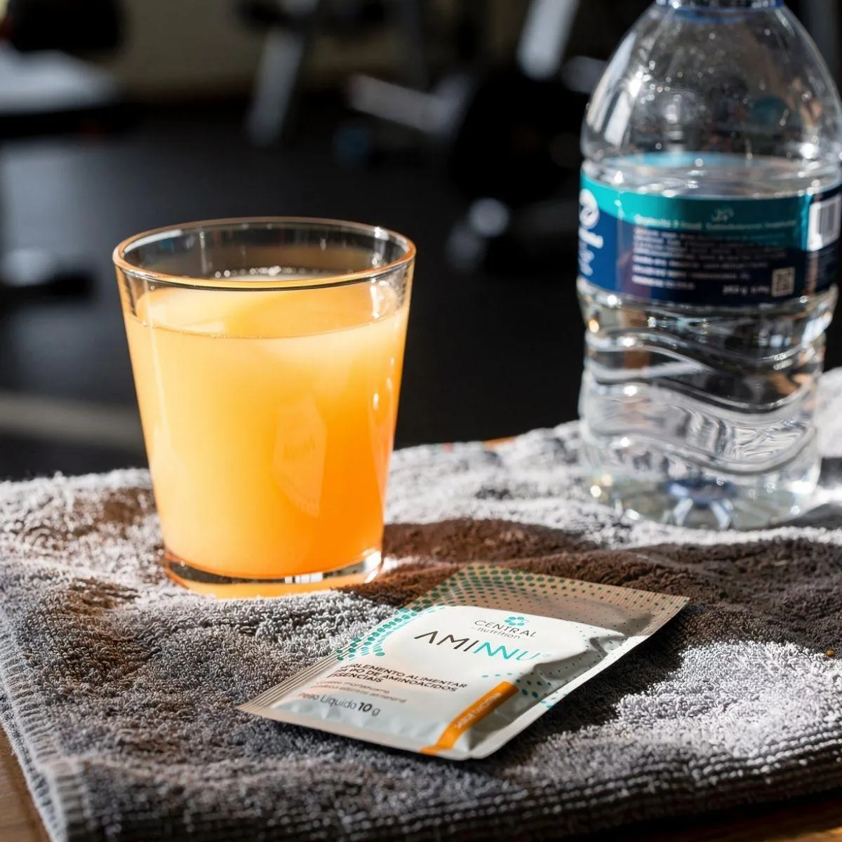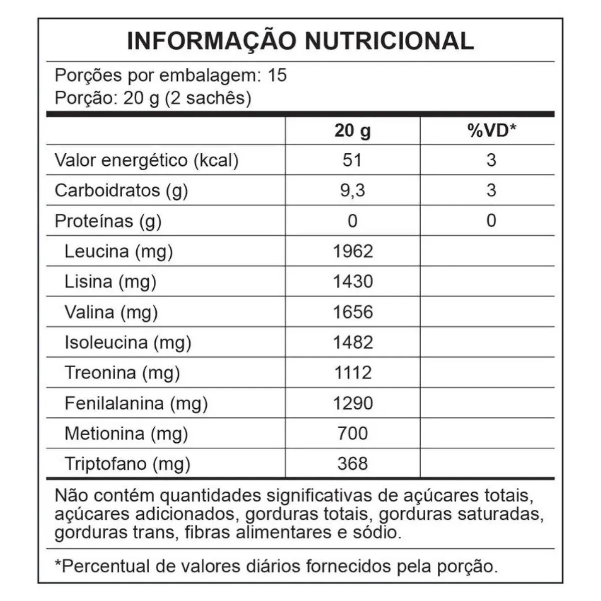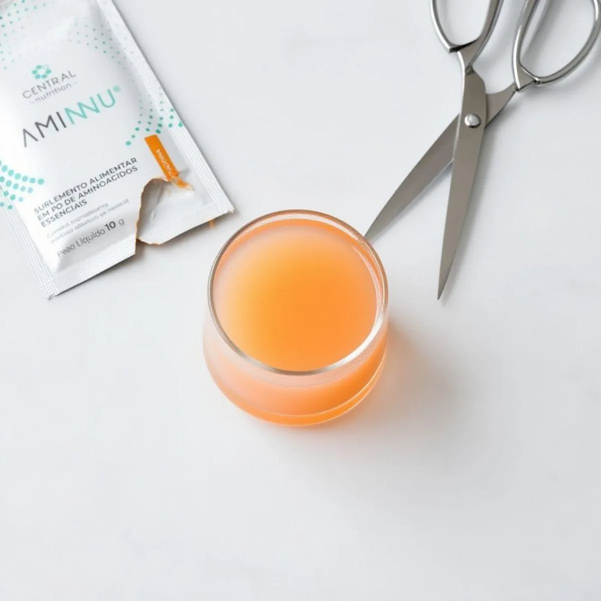 - Suplemento de aminoácidos essenciais em sachês.